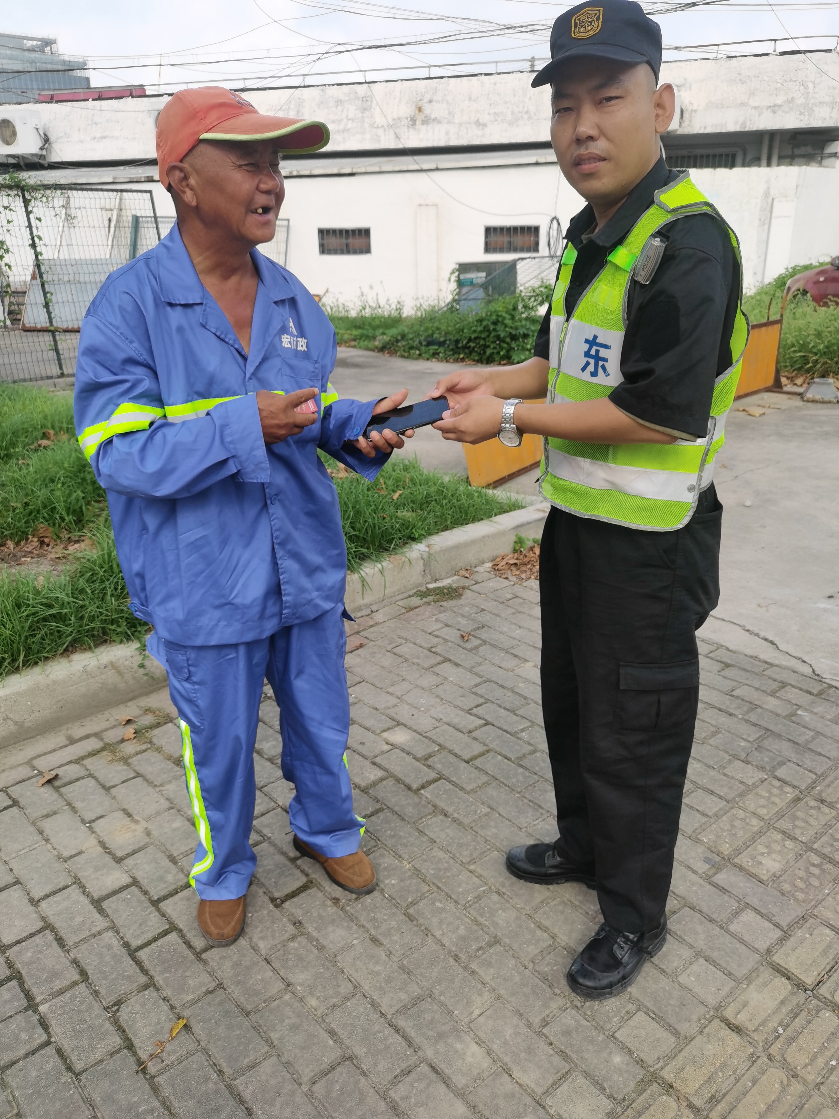 宗保公司駐浦東新區(qū)周東派出所輔助項(xiàng)目員工撿到華為手機(jī)交還失主