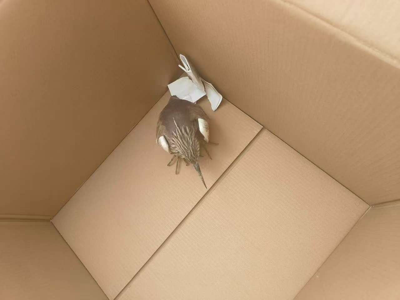 秦文重因看著該鳥不像普通的鳥類就上網(wǎng)查詢,確認(rèn)其是國家一級保護動物——池鷺,隨即便趕緊找來一個干凈的紙箱,小心翼翼地將受傷的池鷺放在箱內(nèi),并向洋山公安處報告了情況。