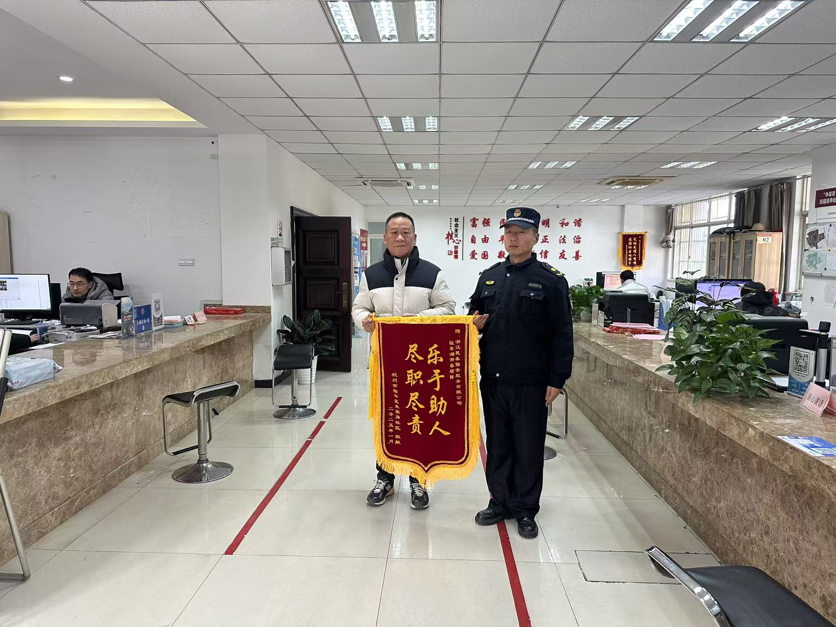 1月6日,浙江民泰公司駐杭州市臨平區(qū)東湖市容項目收到朱家角社區(qū)贈送的一面繡有“樂于助人 盡職盡責(zé)”的錦旗,感謝公司員工在助力社區(qū)開展的街面流動攤點占道經(jīng)營、沿街商鋪跨店經(jīng)營整治活動中作出的積極貢獻(xiàn)。