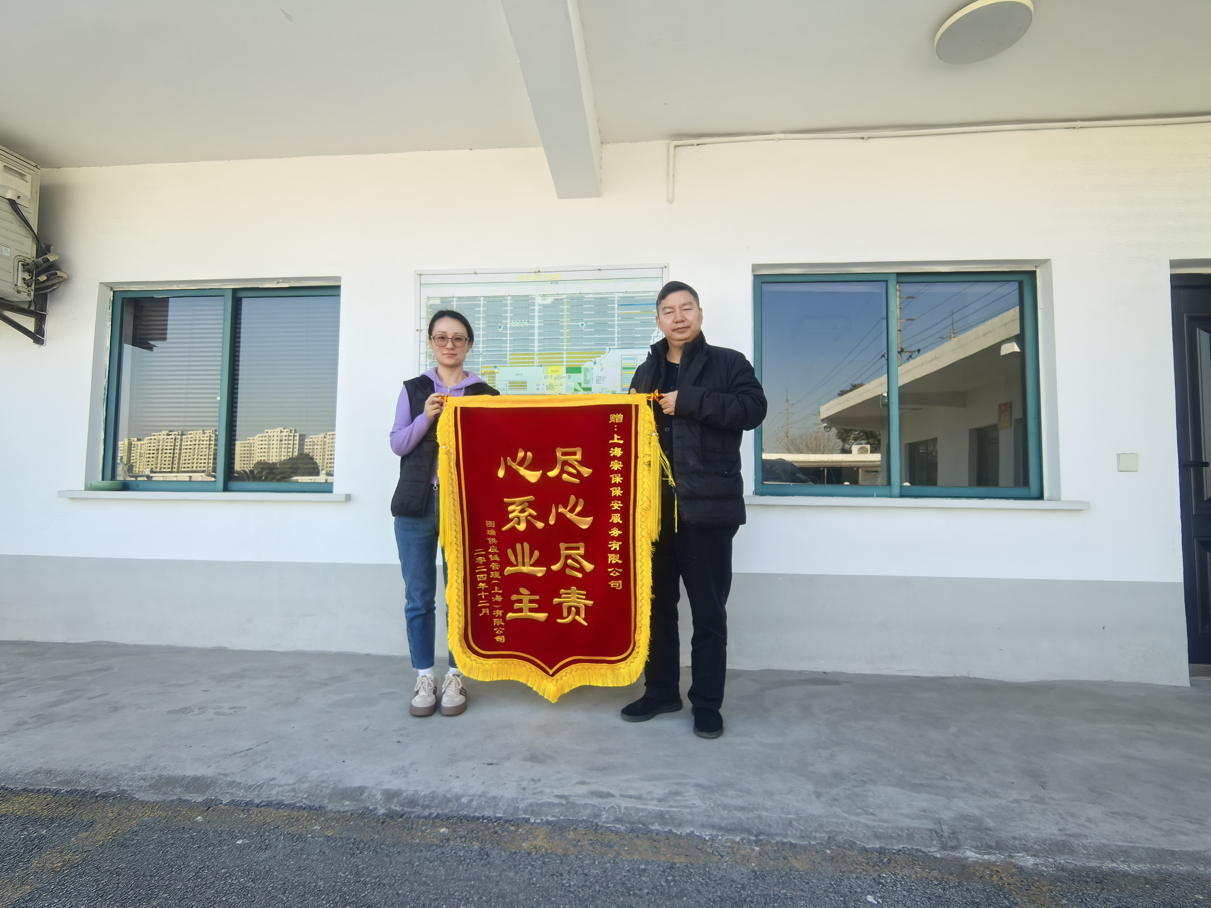 1月17日,宗保公司收到國瑞供應(yīng)鏈管理(上海)有限公司贈送的一面繡有“盡心盡責(zé) 心系業(yè)主”的錦旗,感謝公司員工付出的辛勤勞動,希望公司員工為守護(hù)國瑞供應(yīng)鏈管理(上海)有限公司高質(zhì)量發(fā)展作出新的貢獻(xiàn)。