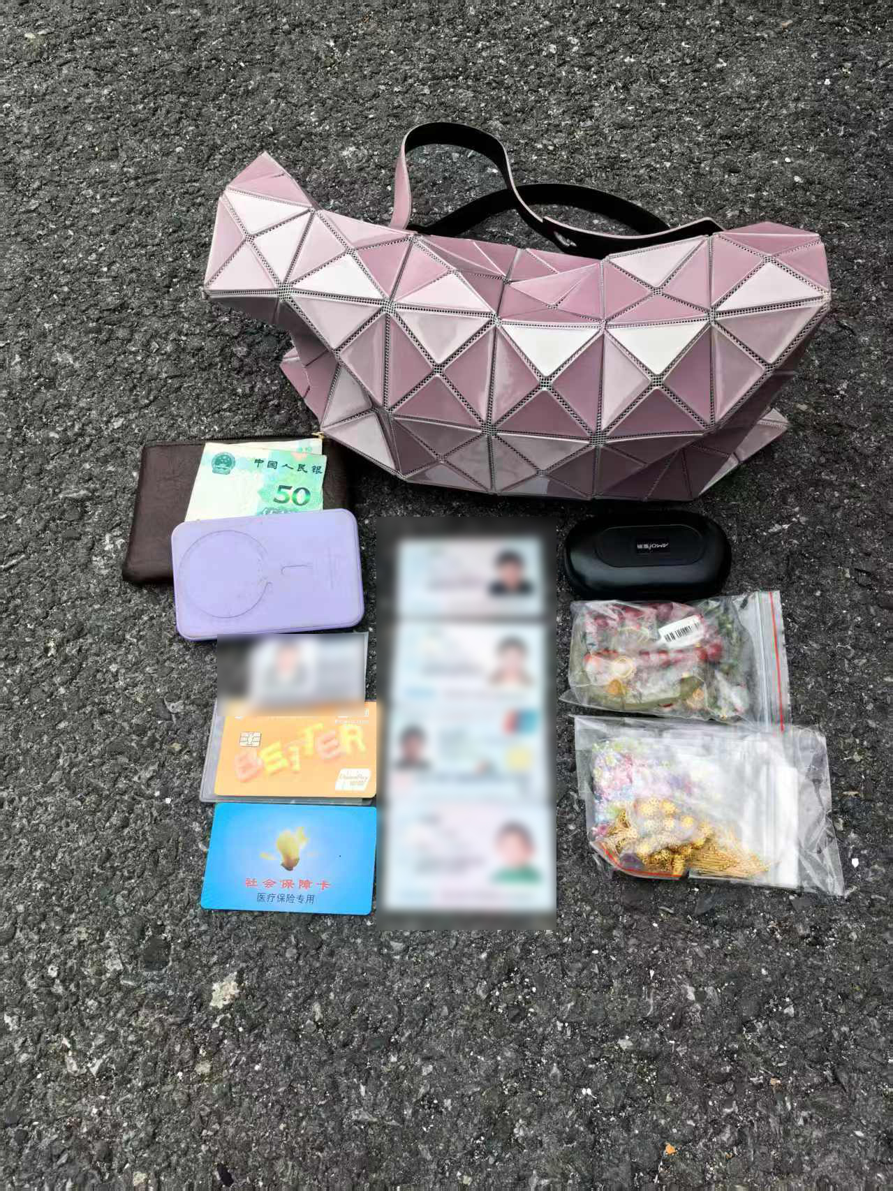 2月23日12:15 ,宗保公司駐浦東新區(qū)張江派出所輔助項目員工趙天航在益江路盛夏路附近巡邏時,撿到一個手提包,內(nèi)有3張身份證、2張社保卡、50元現(xiàn)金及若干飾品等物品。