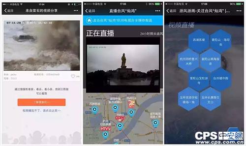 在2015年臺(tái)風(fēng)“燦鴻”侵?jǐn)_期間,螢石合作央視進(jìn)行臺(tái)風(fēng)直播。據(jù)悉,螢石充分調(diào)動(dòng)其在臺(tái)風(fēng)區(qū)中的監(jiān)控點(diǎn)位,全天候直擊臺(tái)風(fēng)登陸前后24小時(shí)的災(zāi)區(qū)實(shí)景。為有需要的個(gè)人及部門提供了實(shí)時(shí)更新的視頻應(yīng)用,為災(zāi)后救援提供了最直觀的信息來(lái)源。