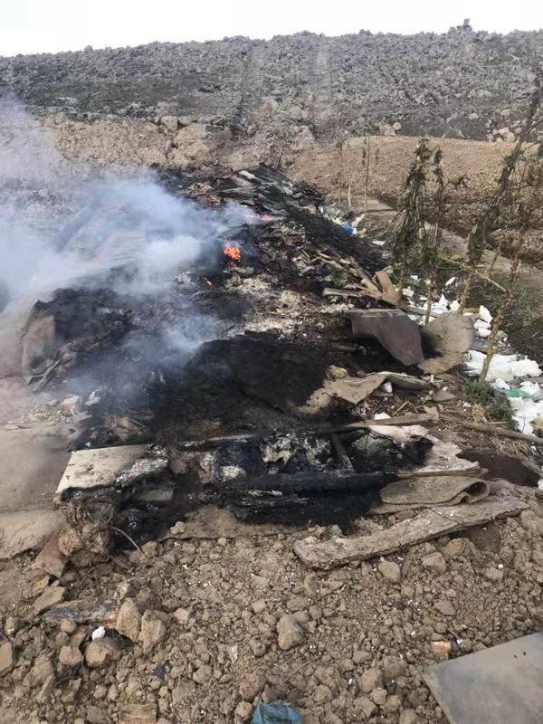 大約半個小時左右火勢有所減小,隊(duì)員們就地取材實(shí)施滅火。有的利用廢棄的水桶到遠(yuǎn)處河邊打水滅火,有的借來滅火器滅火,有的用樹枝撲打明火。