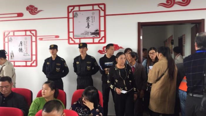 2018年10月20日08:30,“新建征收項(xiàng)目大團(tuán)段簽約順序號(hào)抽簽儀式”在大團(tuán)鎮(zhèn)趙橋村服務(wù)站舉行。為了抽簽儀式現(xiàn)場(chǎng)的秩序,確保抽簽工作順利進(jìn)行,宗保公司接城管隊(duì)通知,派12人臨保來維持抽簽現(xiàn)場(chǎng)秩序。