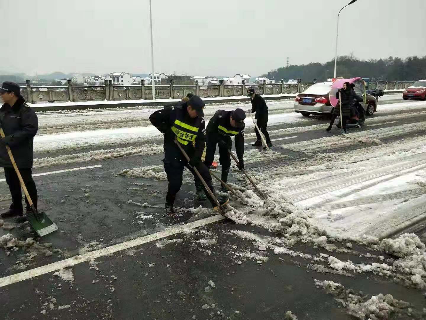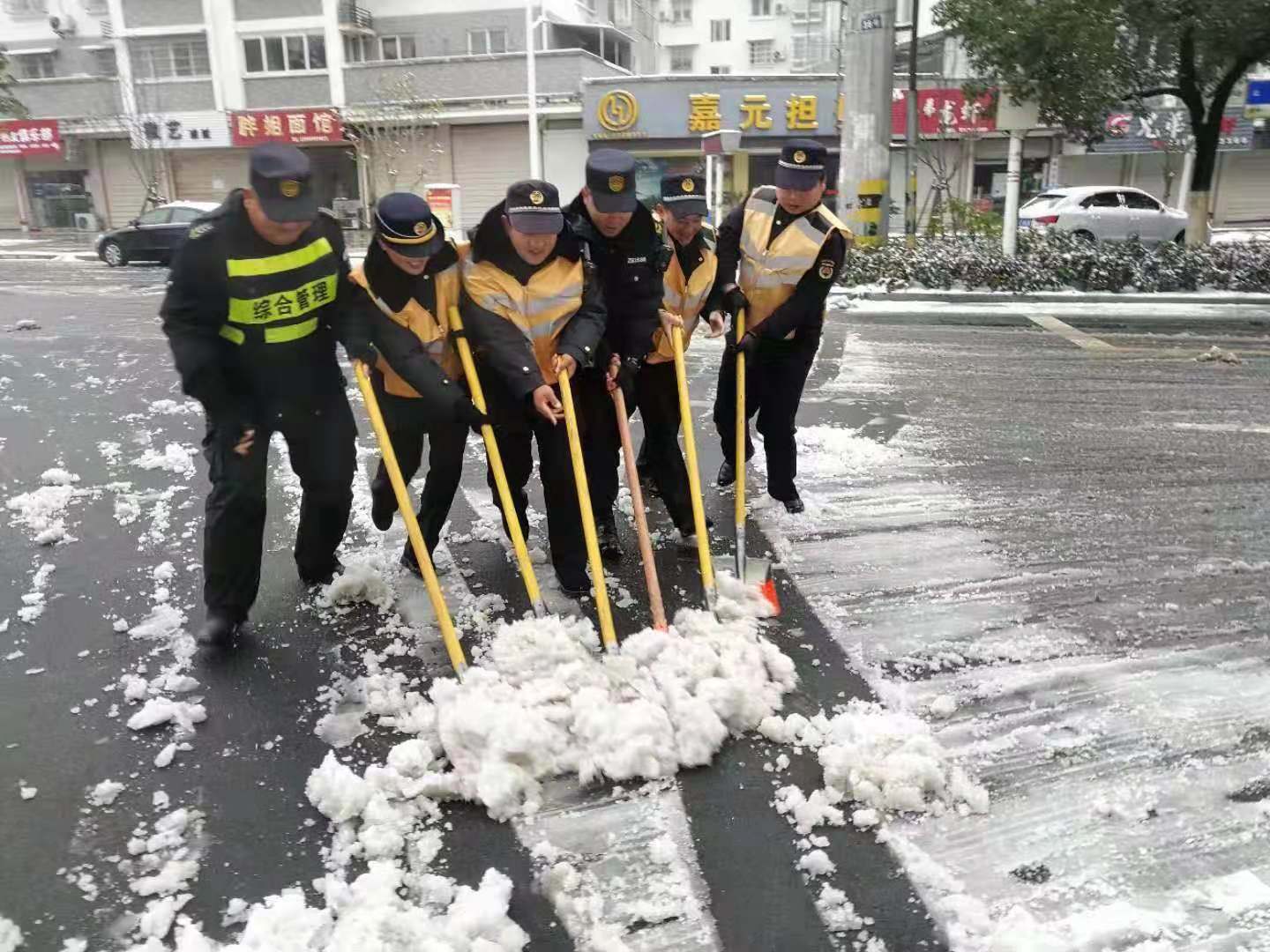 2018年11月8日晚,黃山突降大雪,嚴(yán)寒天氣,道路覆冰,交通受阻,給人們的生活和工作帶來了嚴(yán)重影響。為了積極應(yīng)對(duì)冰雪天氣出行平安,11月9日晨曦初露,宗保駐黃山各區(qū)縣市容項(xiàng)目隊(duì)員紛紛帶好鐵鍬、掃帚等工具,積極配合政府加入到鏟冰除雪的行動(dòng)中。經(jīng)過大家一個(gè)上午的奮戰(zhàn),道路上的冰雪被鏟至路邊,為交通出行掃除了障礙。