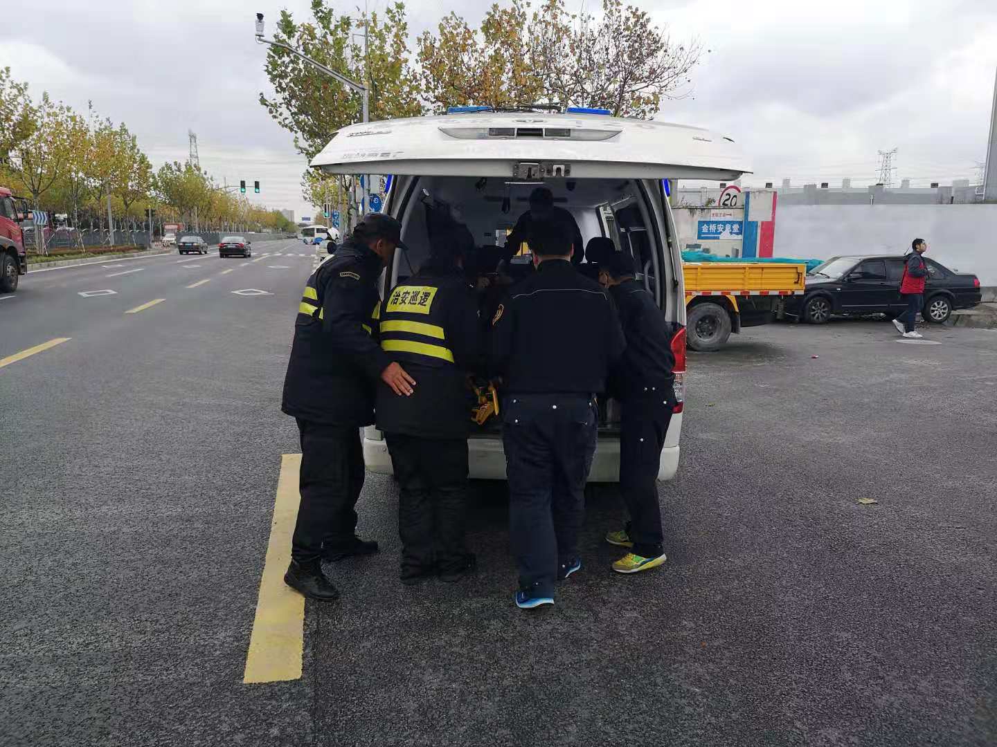 2018年12月7日10:50,宗保駐金橋輔警項(xiàng)目隊(duì)員將交通事故傷者送上救護(hù)車后,又開始了他們的日常巡邏工作。