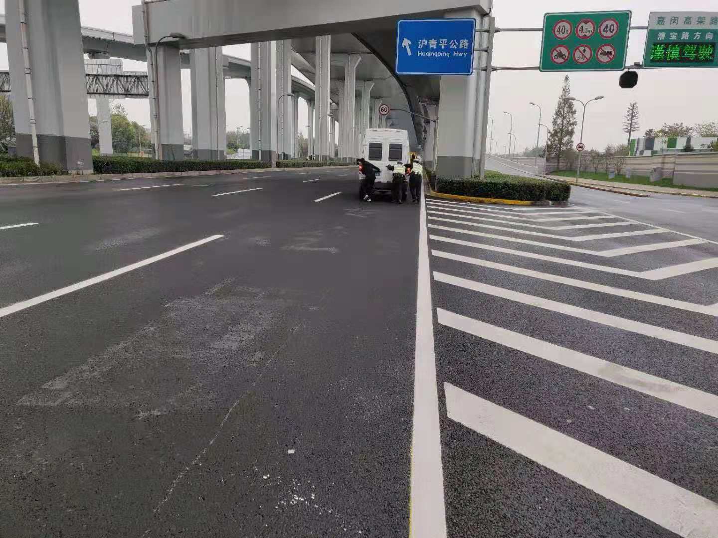 2018年12月9日,宗保駐閔行輔警項目隊員,將拋錨白色依維柯迅速撤離機(jī)動車道,保障道路通暢。