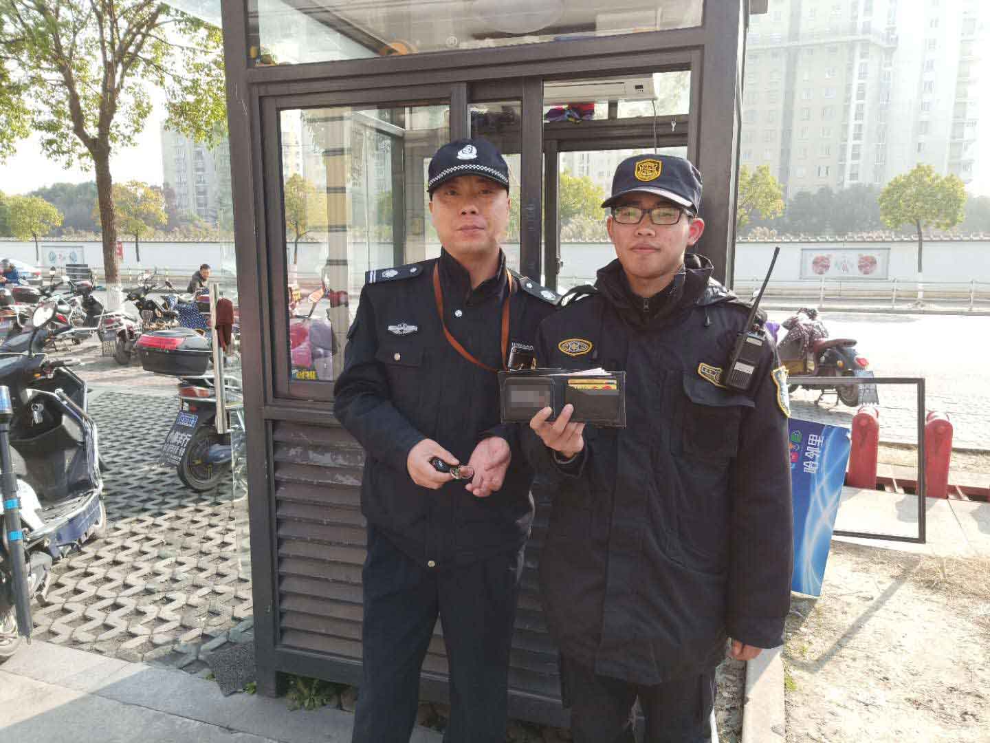 2018年12月17日11:40,宗保駐周浦海印項目隊員李玉斌在上崗期間,撿到一個黑色錢包。隊員在現(xiàn)場等待二十分鐘左右,無失主前來認領(lǐng)。立即上報隊長及區(qū)域經(jīng)理,并打電話報警。周東所民警到達現(xiàn)場后,經(jīng)確認錢包內(nèi)有現(xiàn)金1630元,身份證一張,銀行卡三張,地鐵卡一張,隊員將錢包上交民警。