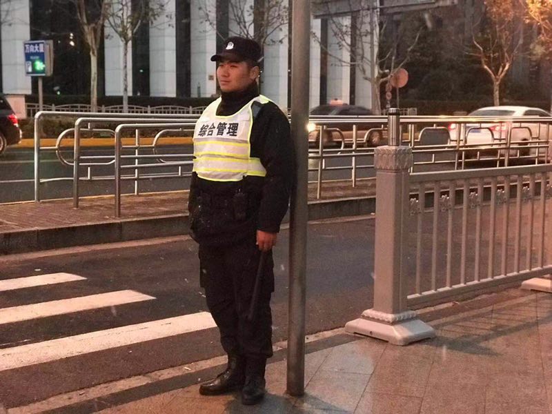 在跨年夜當天,隊員們不顧天氣嚴寒,依然堅守崗位,無私奉獻,即使是面對風雪,依然對市民游客面帶微笑、熱情指路。用宗保公司誠摯的服務(wù)理念與熱情的服務(wù)水平來回報社會,以確保小陸家嘴區(qū)域在跨年夜中無安全事故,人民群眾能過一個安定祥和的元旦佳節(jié)。
