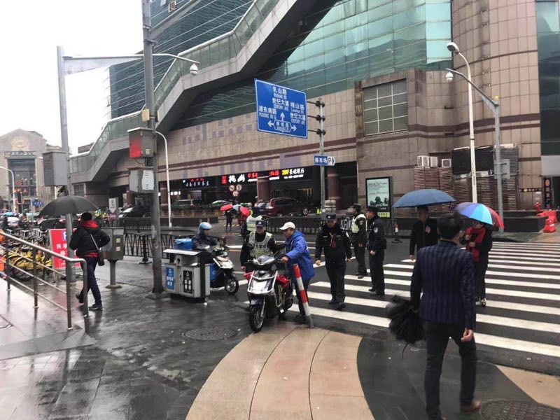 節(jié)日期間,隊員們不僅要做好節(jié)假日戶外人群聚集區(qū)域的安全保衛(wèi)工作,各警區(qū)隊員還要協(xié)助民警在各個違章易發(fā)路口進行設(shè)卡整治交通違章。每天參與小陸家嘴地區(qū)交通整治,協(xié)助民警現(xiàn)場處罰非機動車違章違紀100余起,勸誡不遵守交通法規(guī)游客上百余人,改善了節(jié)日期間各景區(qū)的交通出行秩序。