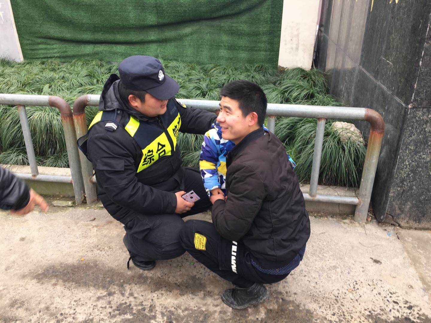 2019年1月13日,浙江民泰駐余杭開(kāi)發(fā)區(qū)市容項(xiàng)目隊(duì)員將一位與家長(zhǎng)走散的小孩安全送到父母手中。