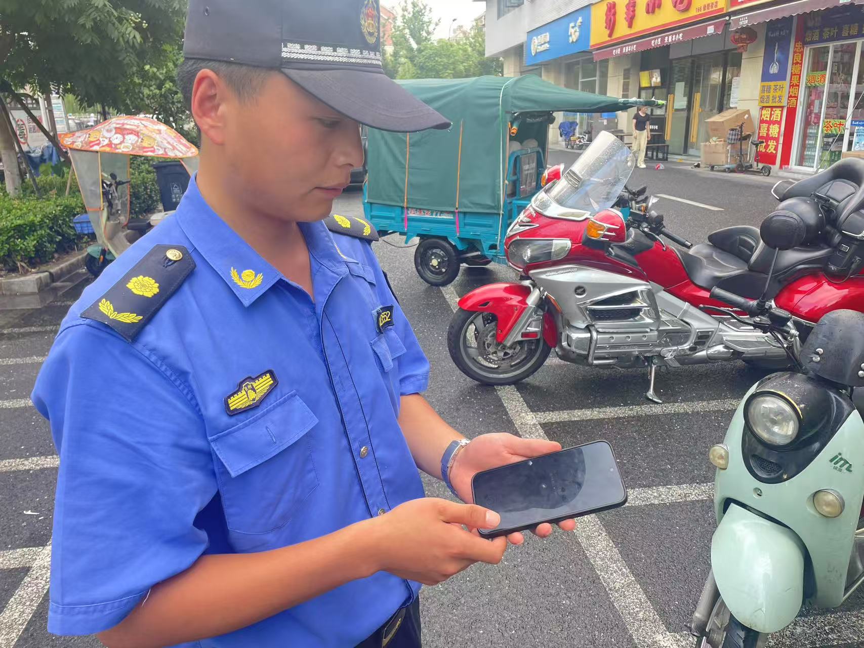 7月28日8:20,浙江民泰公司駐杭州市臨平區(qū)塘棲市容項目員工李冠峰在運河街道范家斗農(nóng)貿(mào)市場巡查時,撿到一部華為手機。報告項目負責(zé)人后,李冠峰便在原地邊巡查邊等待失主。