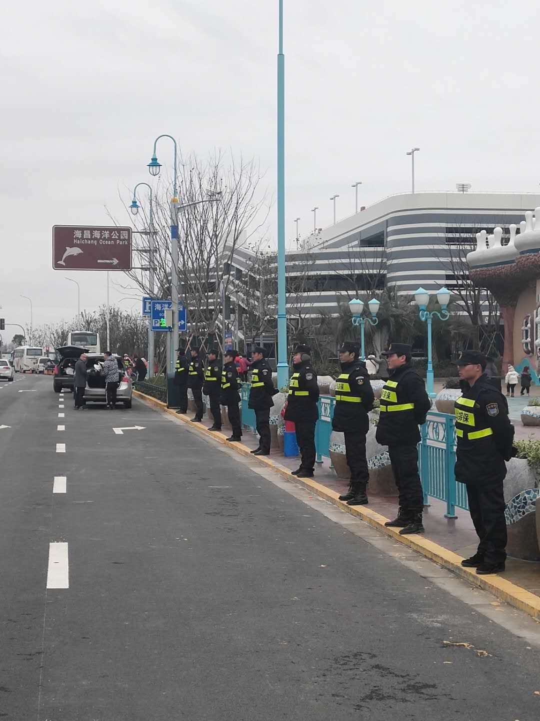 春節(jié)期間除了走親訪友,現(xiàn)在越來(lái)越多的人喜歡旅游。去年十月剛剛開(kāi)園的上海海昌海洋公園,這個(gè)春節(jié)是很多游客的首選旅游地。為了應(yīng)對(duì)春節(jié)期間大客流,確保廣大群眾過(guò)一個(gè)安定祥和的春節(jié),宗保公司除了需承擔(dān)海昌公園內(nèi)外人流疏導(dǎo),還需道路指引、秩序維持、機(jī)動(dòng)巡邏等任務(wù)。