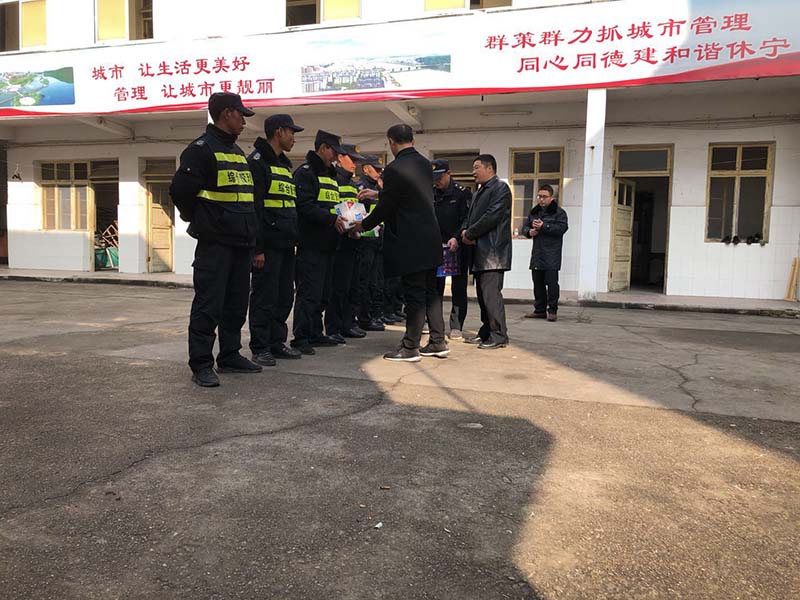 2019年2月1日,黃山市休寧縣城市管理行政執(zhí)法局汪局長(zhǎng)代表城管局,為春節(jié)留隊(duì)執(zhí)勤隊(duì)員發(fā)放慰問(wèn)品