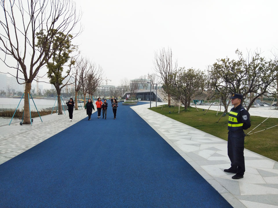 此次“環(huán)藝尚小鎮(zhèn)行”活動(dòng),參賽人員約450人,有當(dāng)紅運(yùn)動(dòng)女團(tuán)。考慮活動(dòng)現(xiàn)場(chǎng)人員多,參賽人員復(fù)雜,路程長(zhǎng)等特點(diǎn),浙江民泰保安公司派出精兵強(qiáng)將34人,提前勘察地形,制定方案,進(jìn)行相關(guān)訓(xùn)練。