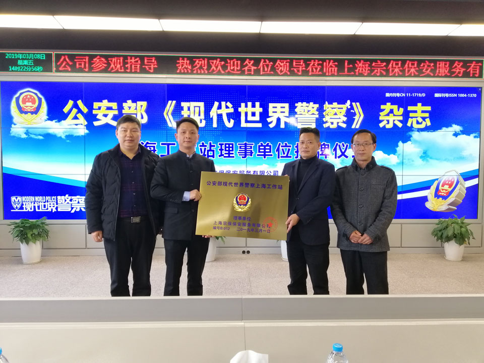 2019年3月8日下午14:00,公安部《現(xiàn)代世界警察》雜志社上海工作站理事單位掛牌儀式在宗保保安公司舉行,宗保保安公司正式榮任理事單位。