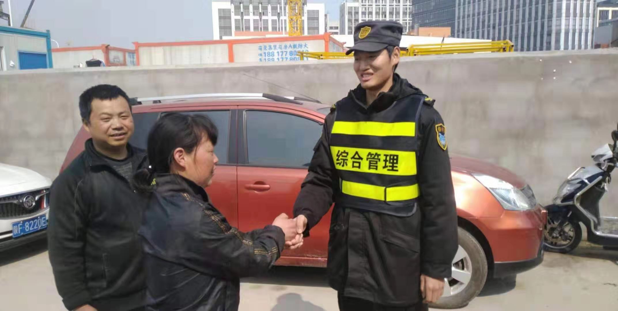 小劉和小李立即將該情況上報(bào)項(xiàng)目組長(zhǎng)。組長(zhǎng)調(diào)集附近隊(duì)員,一起幫忙尋找。該路段有工地,人多復(fù)雜。經(jīng)過(guò)半個(gè)多小時(shí)的努力,在工地圍墻不起眼的角落找到一個(gè)小孩,經(jīng)確認(rèn)正是要找尋的小孩。小孩的母親激動(dòng)地跪倒在地,并拿出現(xiàn)金,以表示對(duì)宗保隊(duì)員的感謝,但是被宗保隊(duì)員婉言謝絕了。