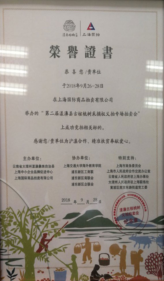 2018年,公司參與“助力漾濞,精準(zhǔn)扶貧”古核桃拍賣會。