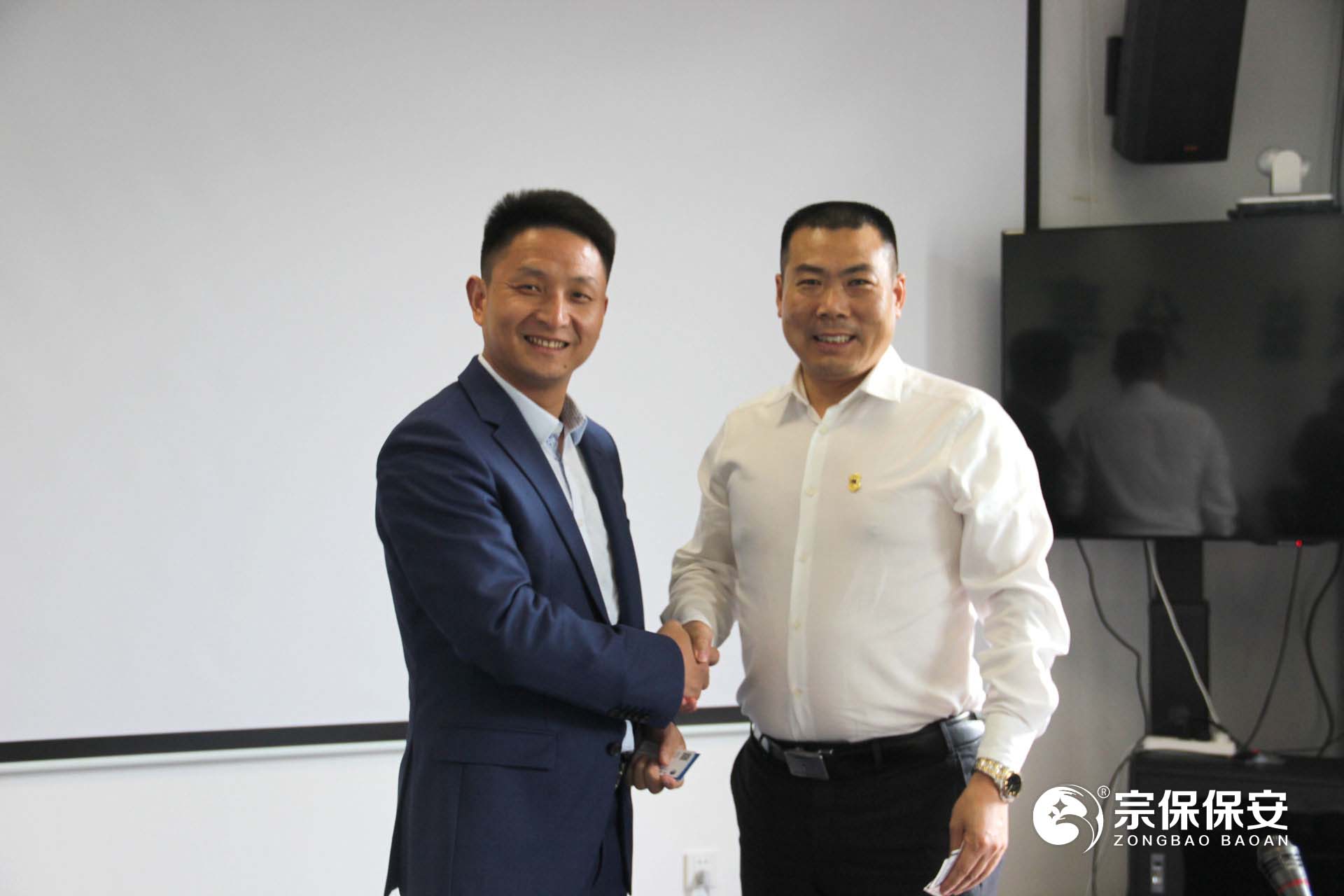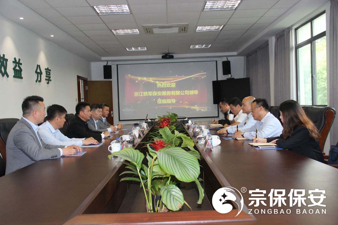 2019年5月17日上午,浙江鐵軍保安服務(wù)有限公司陳寶華董事長一行5人到宗保公司進(jìn)行了為期半天的參觀考察和經(jīng)驗交流,馮中保董事長熱情接待。