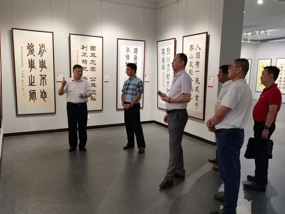 8月31日,宗保公司馮中保董事長率領(lǐng)公司部分高管來到金橋碧云美術(shù)館,參觀“百位歷史名人,醒世名言警句”童世平將軍書法展。