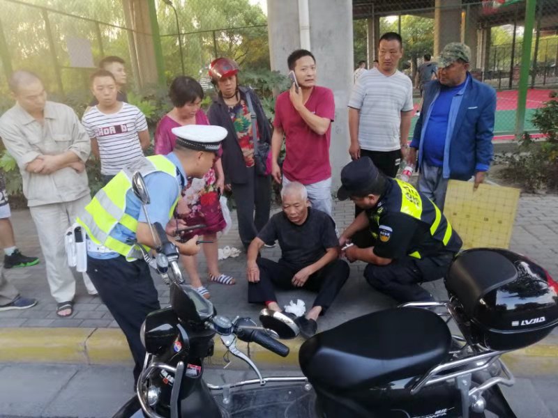 當(dāng)天下午16:50左右,小張像往常一樣緊張有序地執(zhí)勤,當(dāng)巡查到紅豐立交橋崗位時看到前面一群人圍觀,第一反應(yīng)可能出事了。小張急忙走上前,只見一位大爺騎電車摔倒在地。
