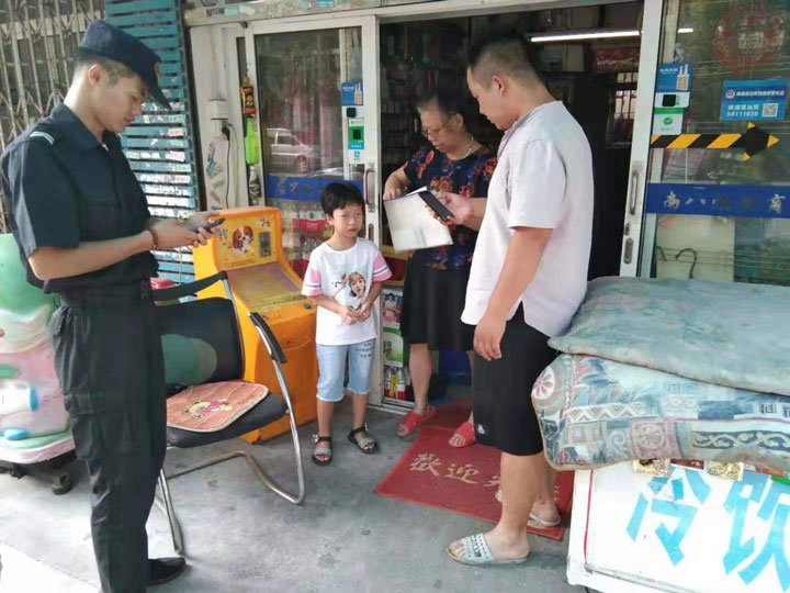 7月14日,上海周浦市容隊員幫助走失小孩找到家人
