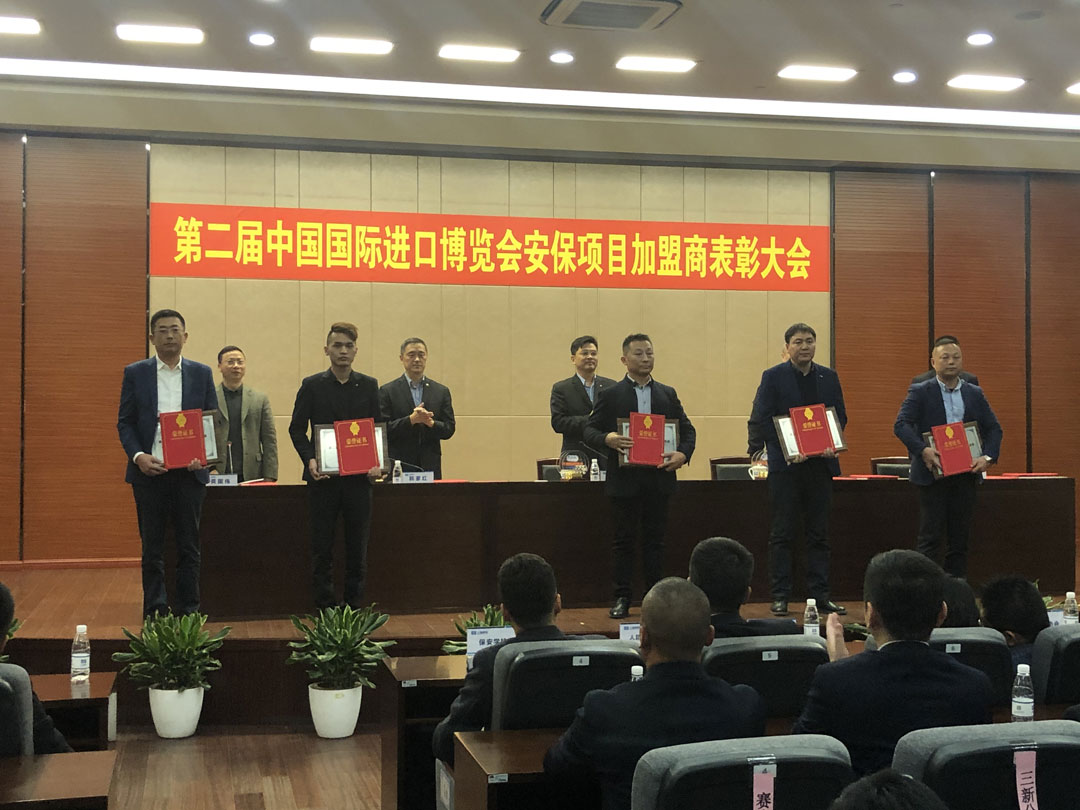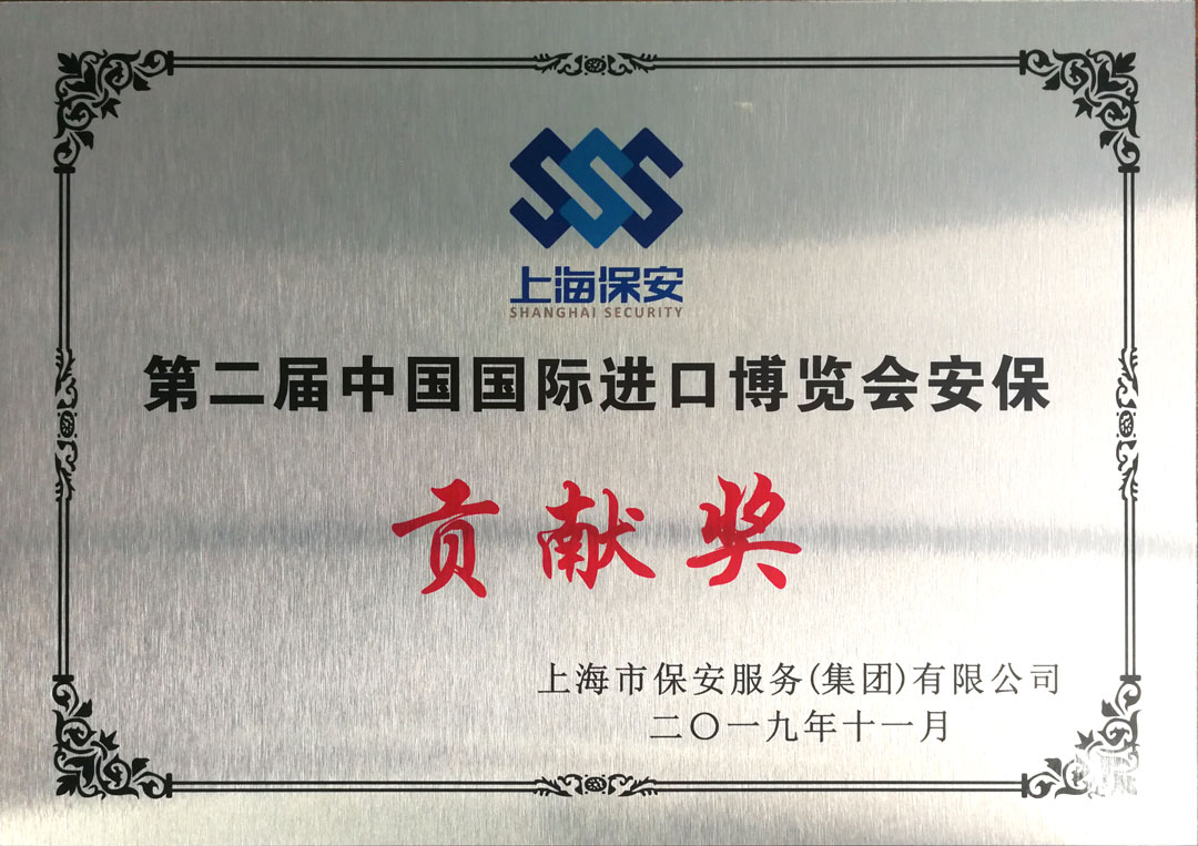 2019年11月29日,第二屆中國國際進(jìn)口博覽會安保項(xiàng)目加盟商表彰大會在上海市保安服務(wù)(集團(tuán))有限公司舉行,上海宗保保安服務(wù)有限公司榮獲貢獻(xiàn)獎。