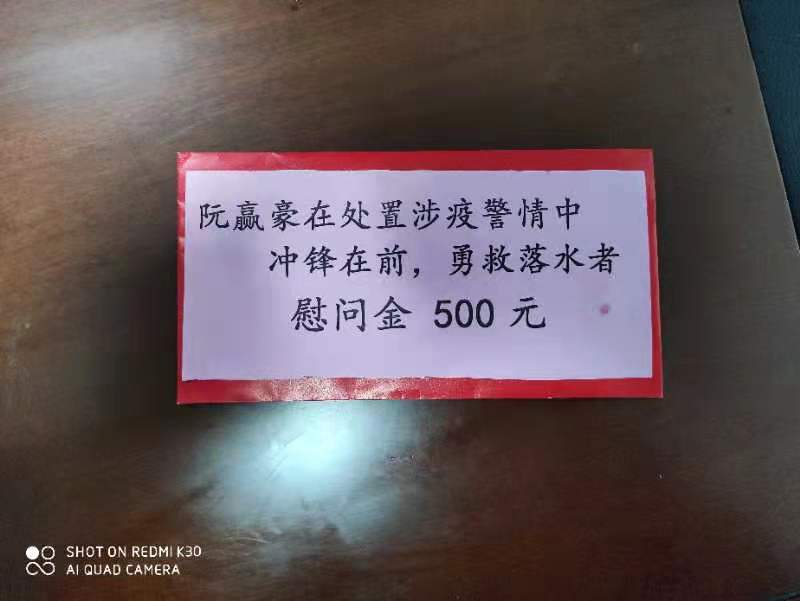 當(dāng)天晚上,派出所領(lǐng)導(dǎo)對阮贏豪的行為提出表揚,并發(fā)放了慰問金。