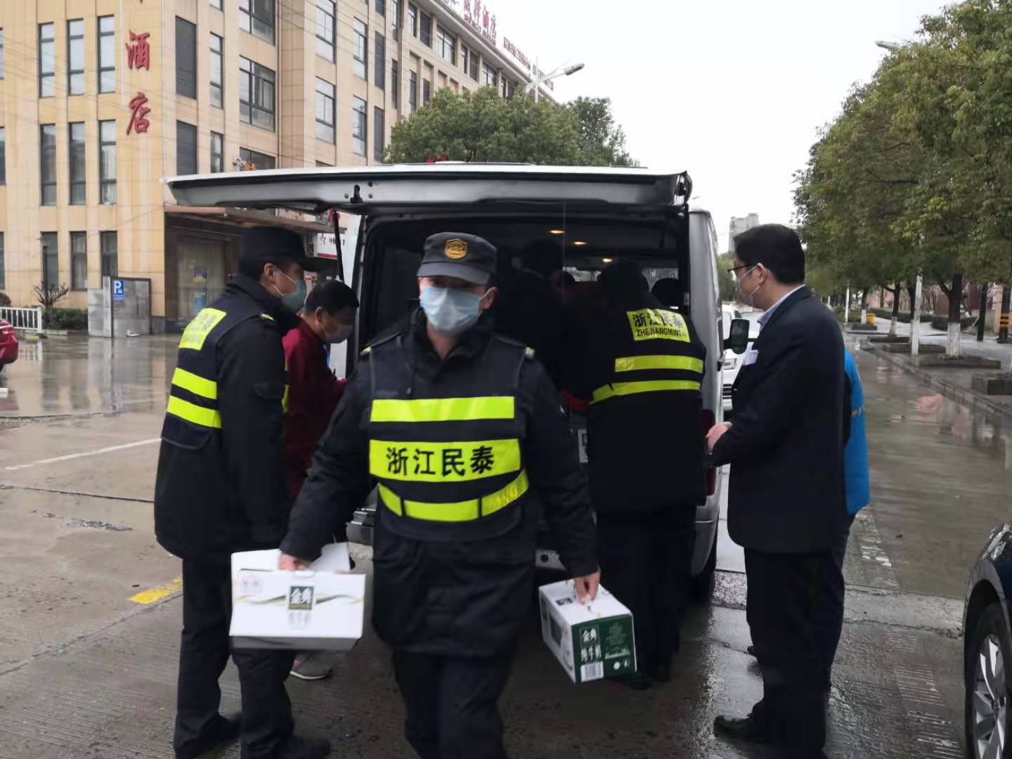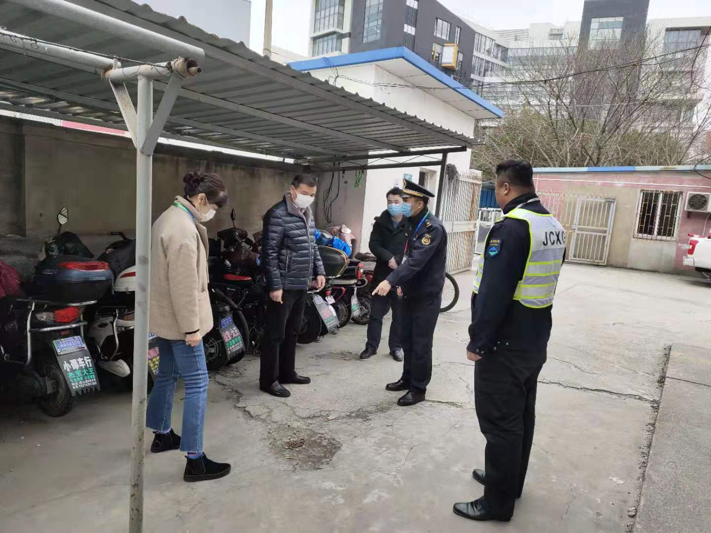 2月14日,大團城管隊長劉德信、教導員金琳到公司大團惠南宿舍檢查指導,看望慰問參與疫情防控的宗保員工。