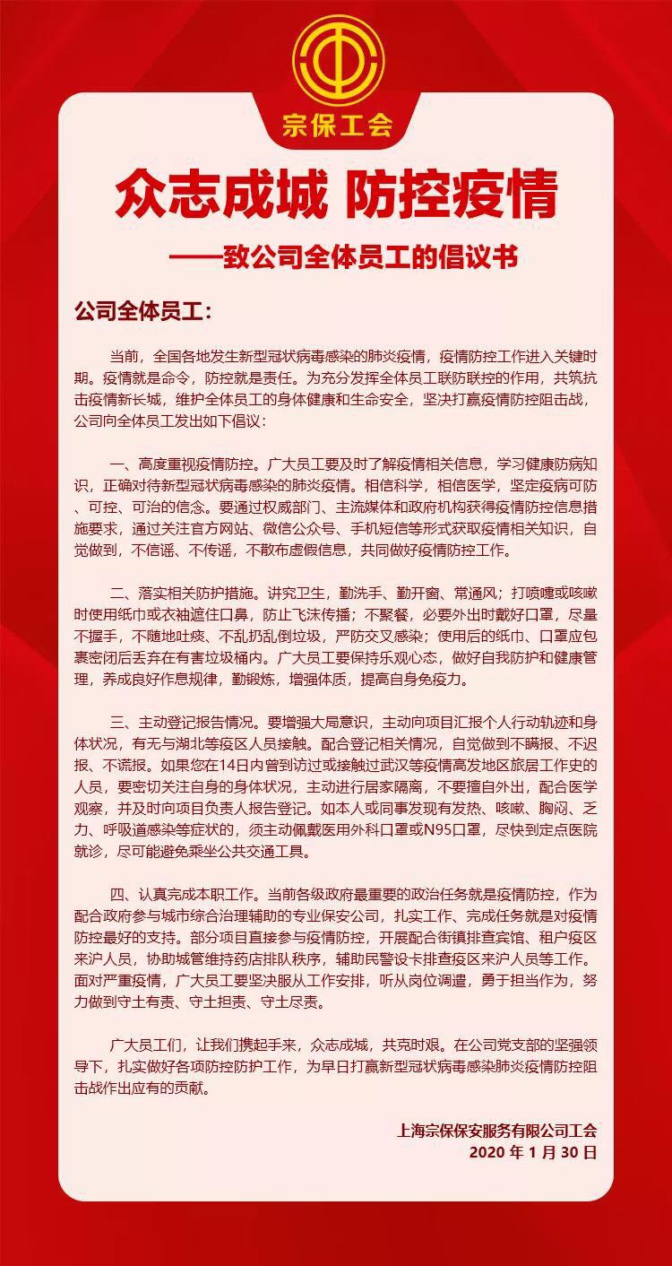 新冠肺炎疫情發(fā)生以來,宗保公司始終把員工安全放在首要位置,用務(wù)實(shí)的舉措,為員工送上真情實(shí)意的關(guān)懷。