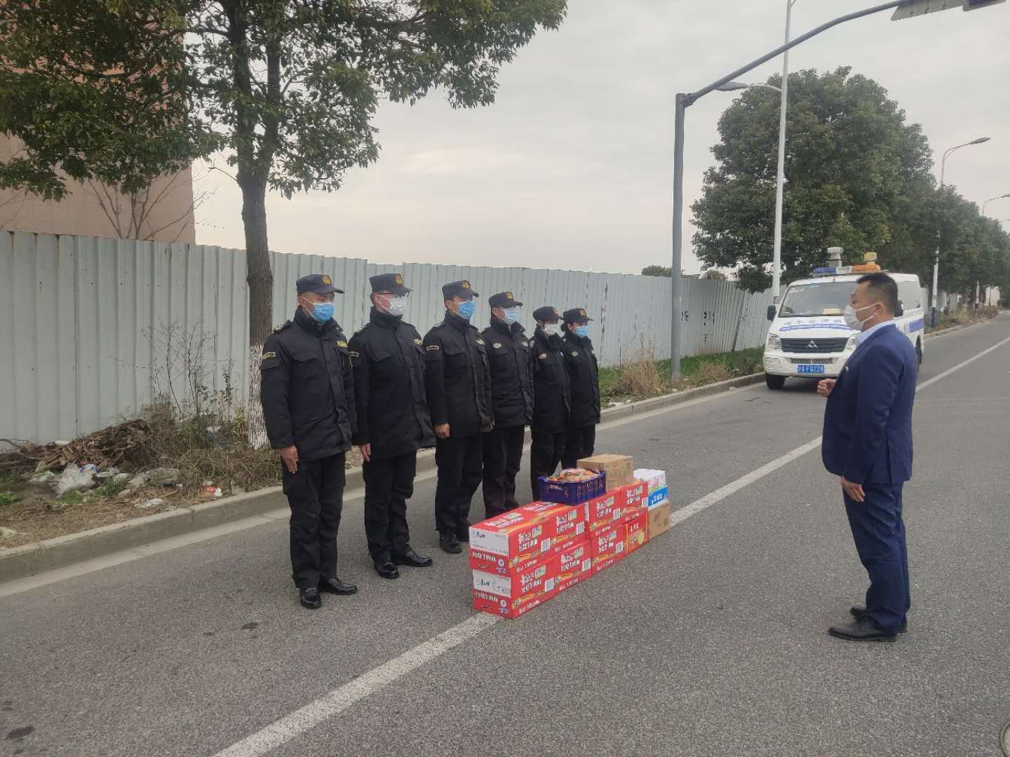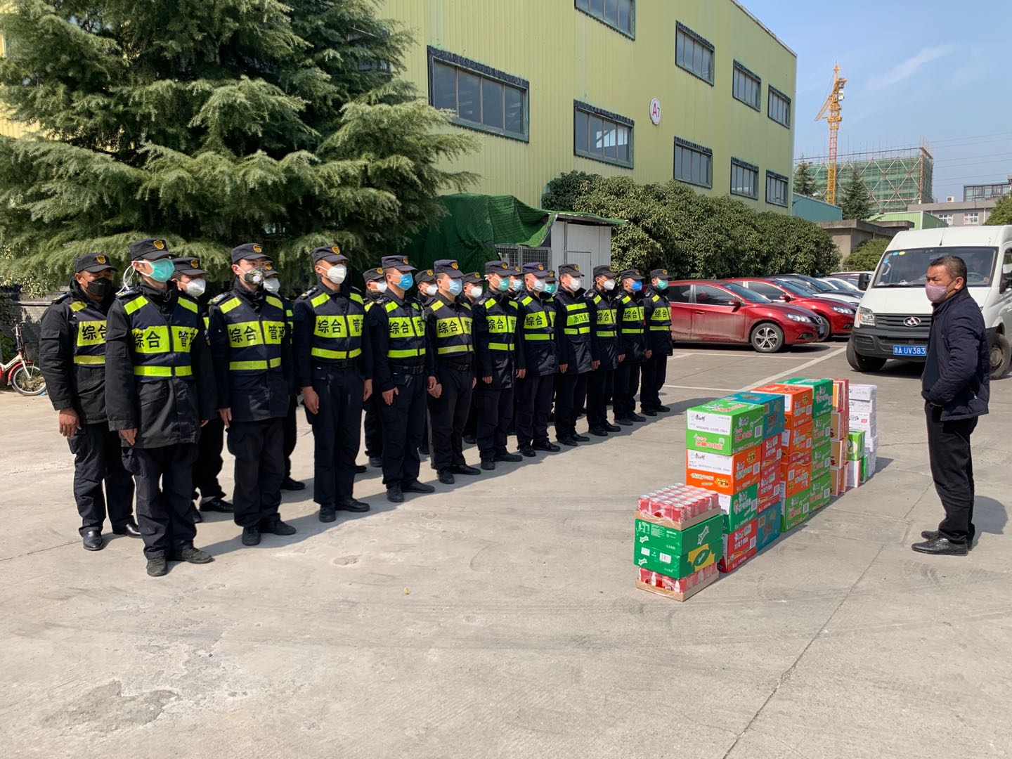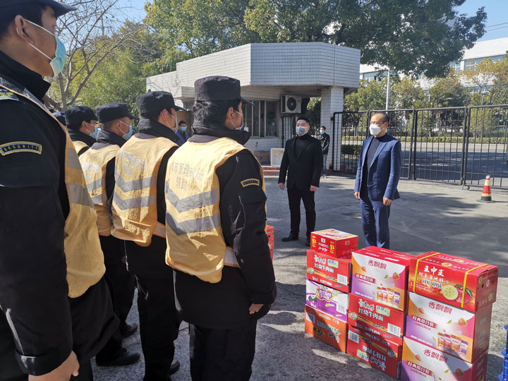 開展關(guān)愛慰問,為員工們送情送暖。疫情期間,公司領(lǐng)導(dǎo)明確責(zé)任分工,分區(qū)域、分項(xiàng)目包干,到一線工作崗位,看望慰問在崗員工,叮囑做好自我防護(hù),鼓勵(lì)隊(duì)員們?cè)俳釉賲枺倭⑿鹿Α=刂?5日,公司已累計(jì)發(fā)放方便面 1650箱,火腿腸 880箱,牛奶460箱,餅干300箱,飲料600箱,水果300箱。