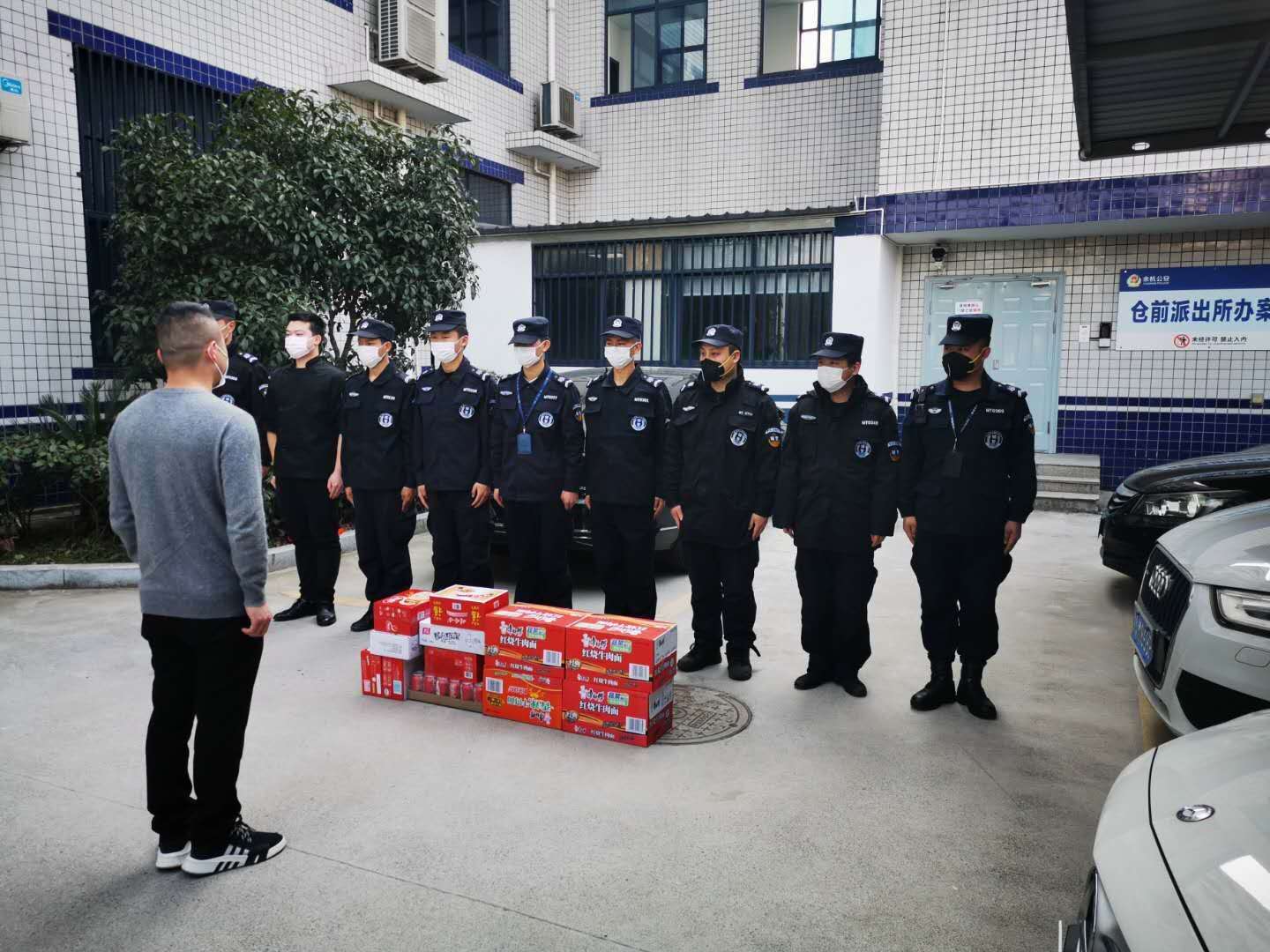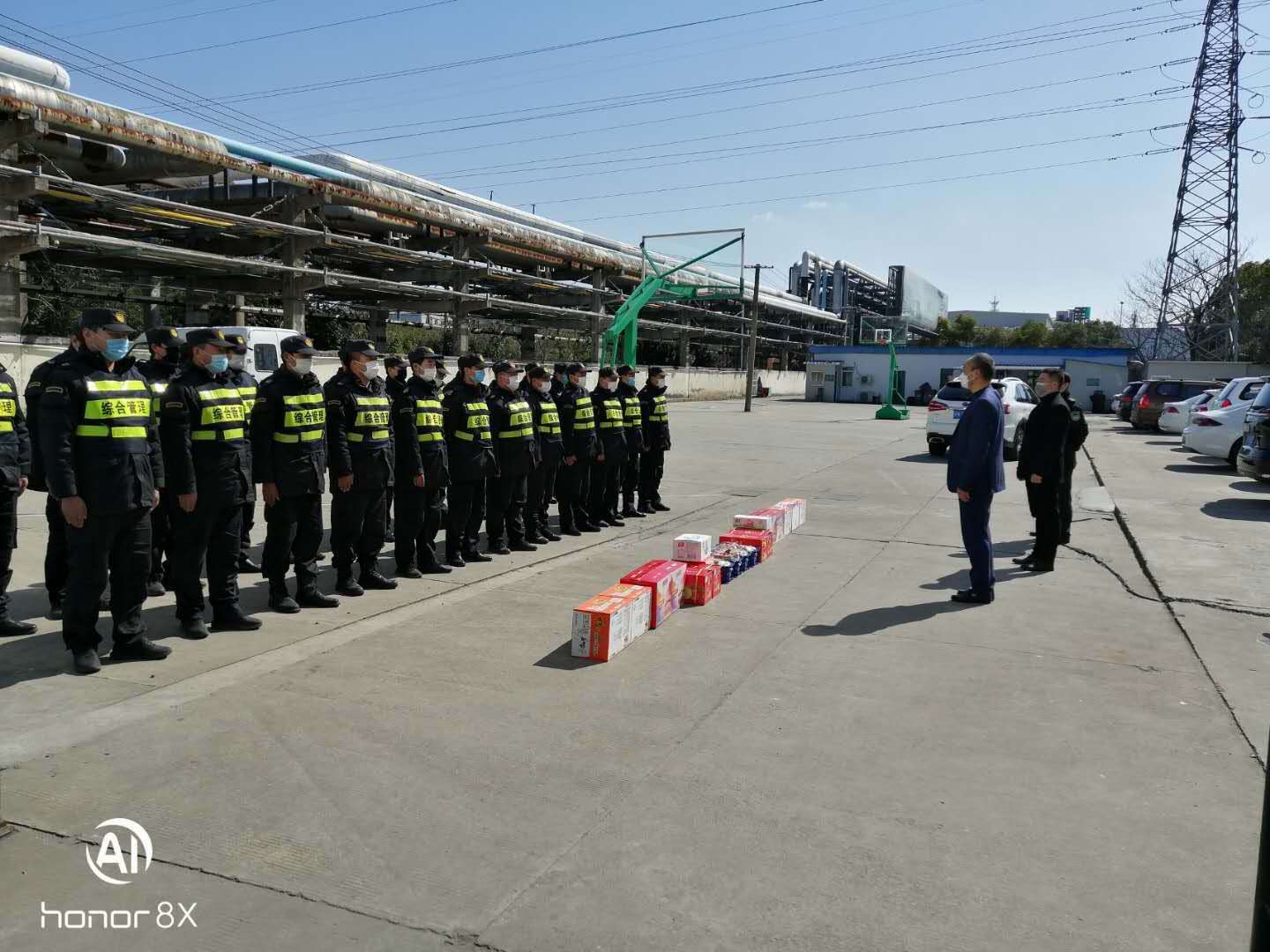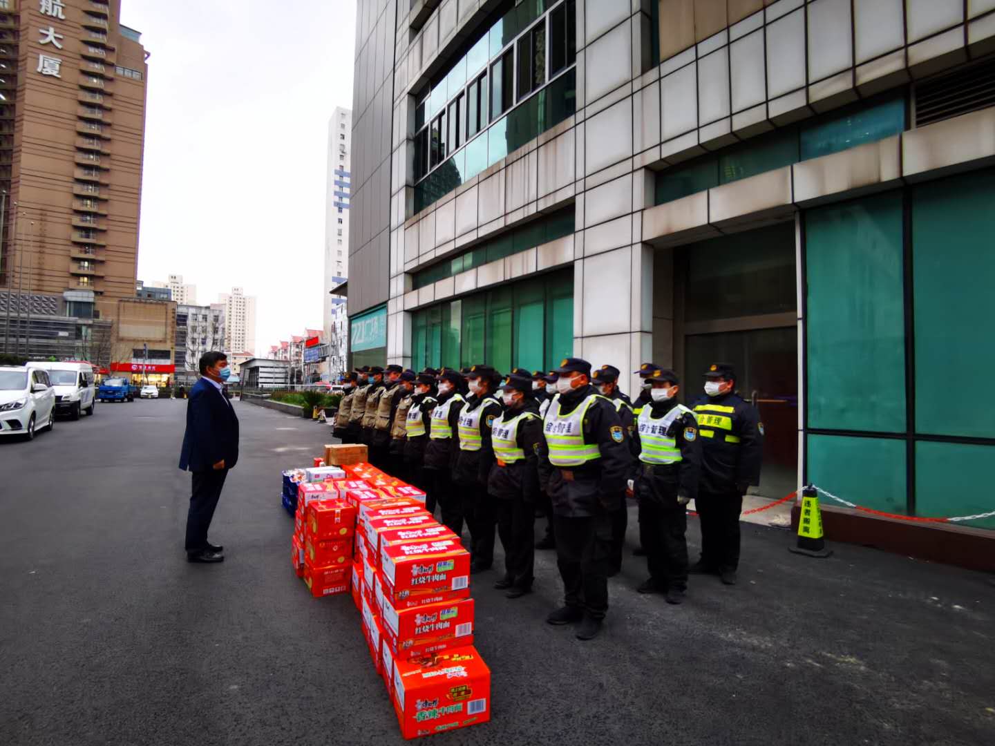 開展關(guān)愛慰問,為員工們送情送暖。疫情期間,公司領(lǐng)導(dǎo)明確責(zé)任分工,分區(qū)域、分項(xiàng)目包干,到一線工作崗位,看望慰問在崗員工,叮囑做好自我防護(hù),鼓勵(lì)隊(duì)員們?cè)俳釉賲枺倭⑿鹿Α=刂?5日,公司已累計(jì)發(fā)放方便面 1650箱,火腿腸 880箱,牛奶460箱,餅干300箱,飲料600箱,水果300箱。