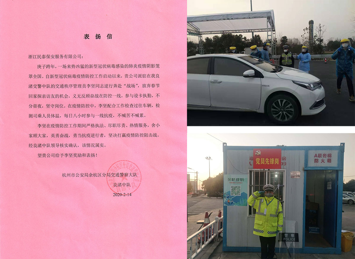 2月14日,杭州市公安局余杭區(qū)分局良渚交警中隊(duì)送來2封表揚(yáng)信,表揚(yáng)浙江民泰駐該中隊(duì)交通輔警項(xiàng)目的李堅(jiān)和張珍在疫情防控中的工作表現(xiàn)。