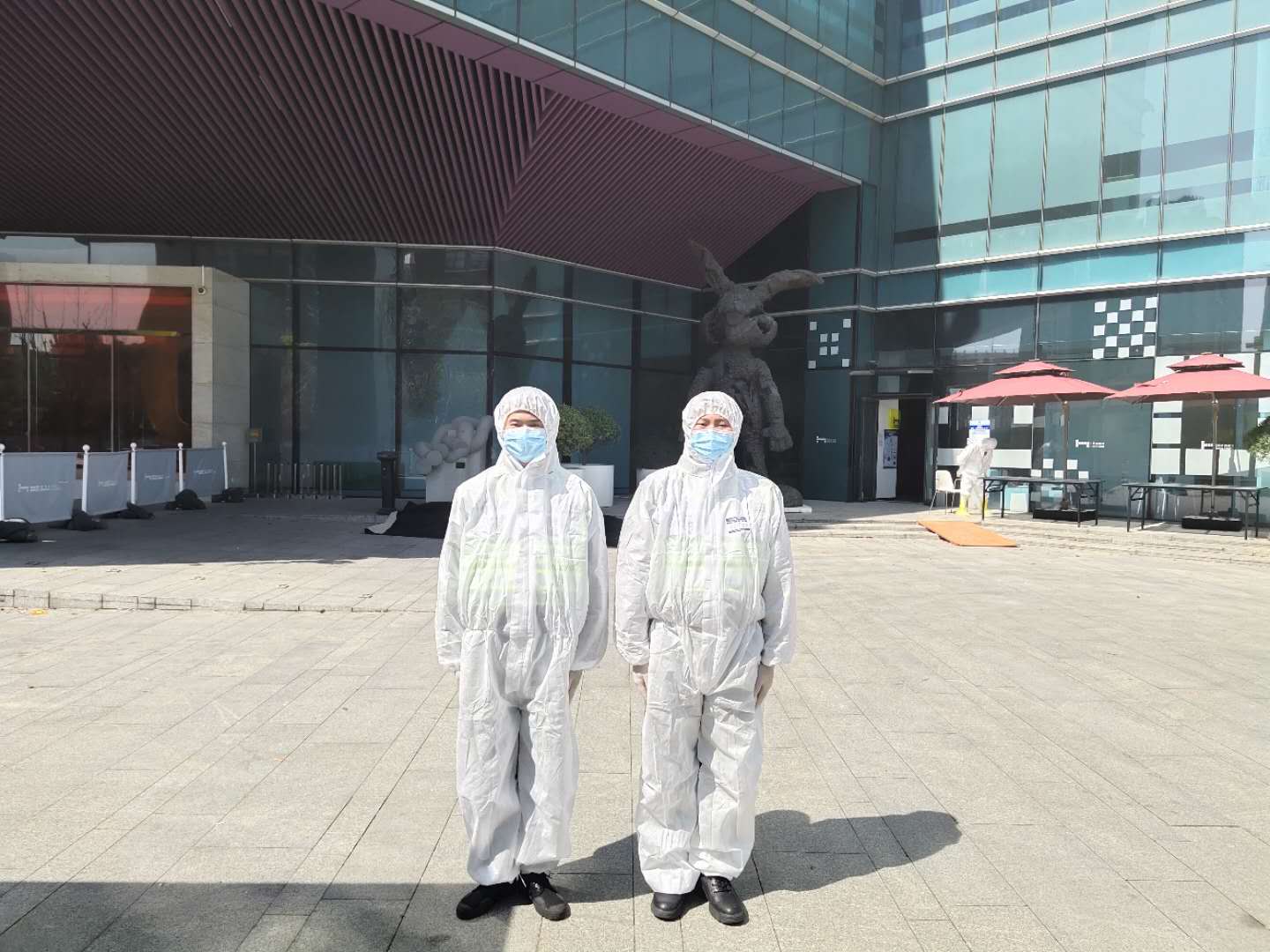 宗保公司駐金山衛(wèi)鎮(zhèn)市容項目4月5日接到甲方通知,派出隊員配合鎮(zhèn)政府對XX酒店境外回國人員進(jìn)行集中隔離看護(hù)。