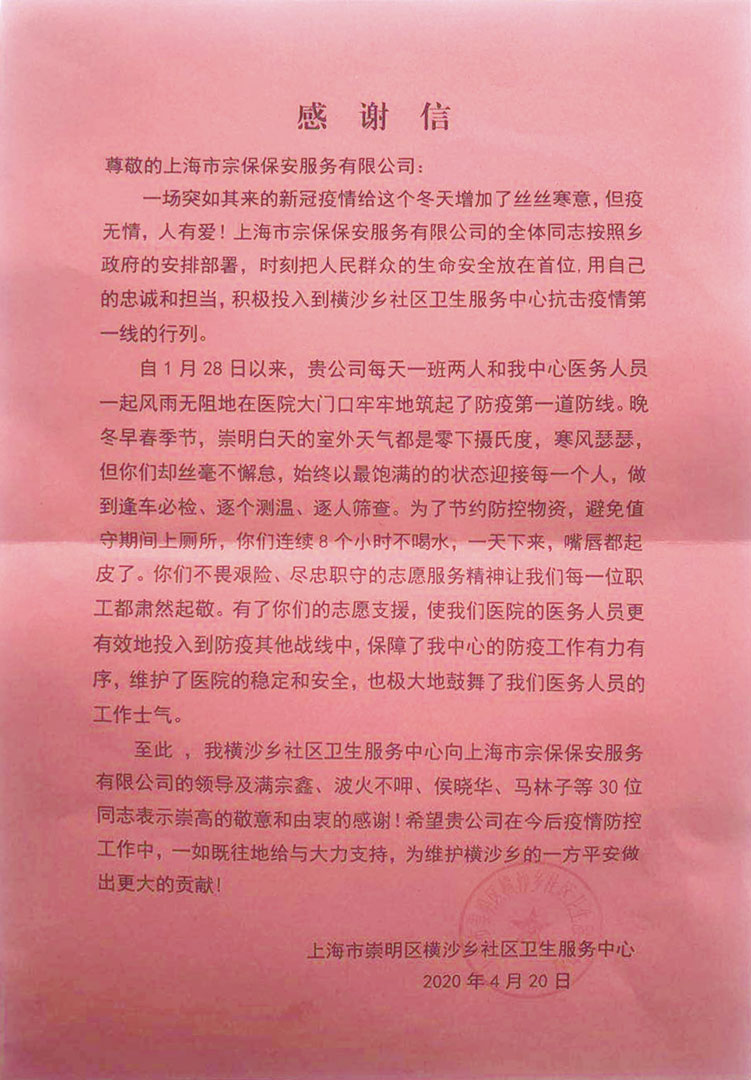 面對(duì)突如其來(lái)的疫情,上海宗保保安服務(wù)有限公司全體員工聞令而動(dòng),認(rèn)真貫徹落實(shí)各級(jí)疫情防控工作決策部署要求,戮力同心,共克時(shí)艱,全力以赴投入到疫情防控工作之中,展現(xiàn)了宗保人的責(zé)任與擔(dān)當(dāng)。