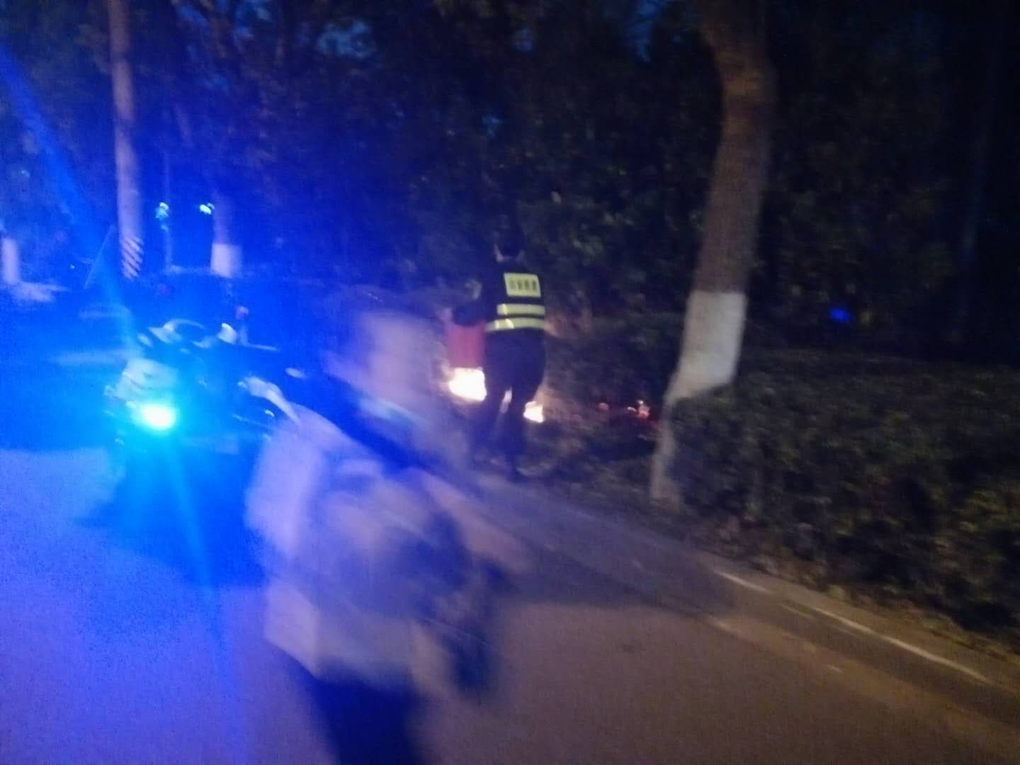 4月28日18時(shí)許,宗保公司駐惠南鎮(zhèn)園區(qū)派出所輔警項(xiàng)目隊(duì)員賈志偉、鄒加侖巡邏至滬南公路惠南鎮(zhèn)匯南村路段,發(fā)現(xiàn)路邊綠化帶內(nèi)的干樹(shù)葉起火。