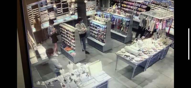 當天13:40,郭秀軒和賈大千巡邏至三八路附近時,一名三福商場工作人員拿著手機急匆匆地跑過來反映情況:一個年輕女子在商場行竊,被監(jiān)控拍到全過程。該工作人員手機中視頻顯示:行竊女子身穿黑白斑點短袖 、藍色牛仔褲,腳穿黑色運動鞋。