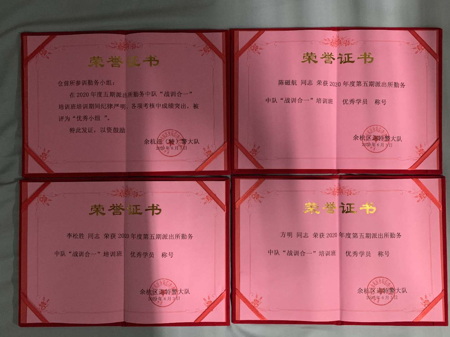 5月20日,倉前派出所輔警項目接到甲方通知,抽調(diào)5名隊員參加余杭市巡特警大隊舉辦的第五期派出所勤務(wù)中隊“戰(zhàn)訓(xùn)合一”培訓(xùn)班。