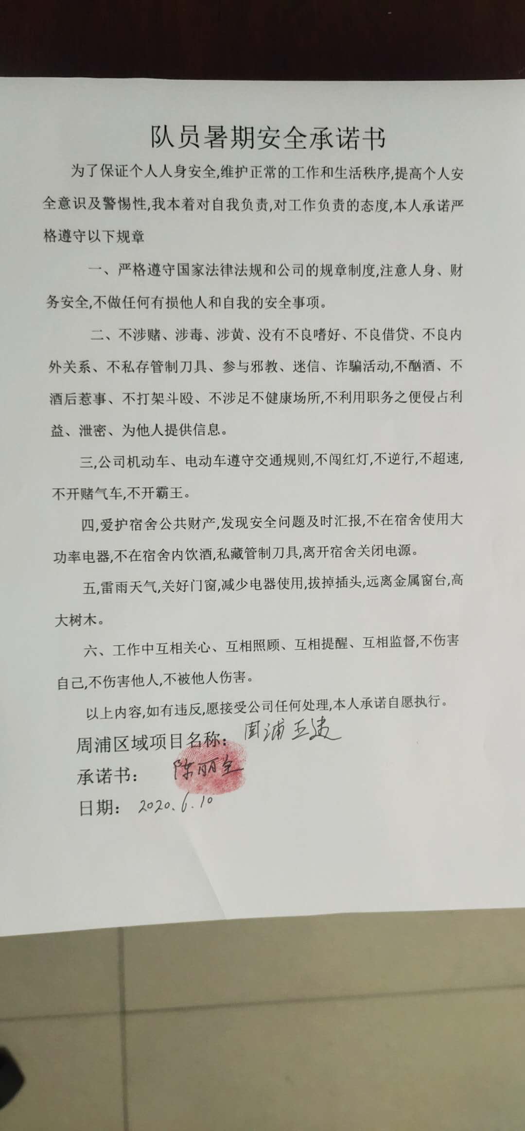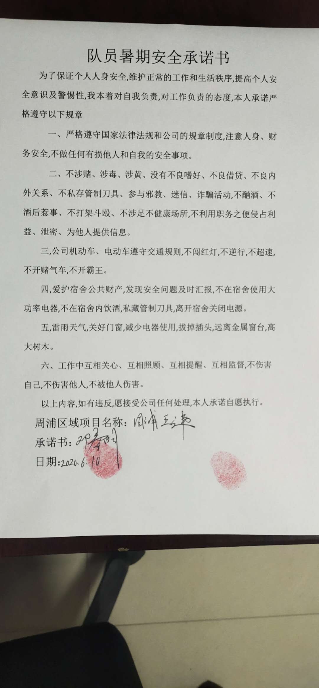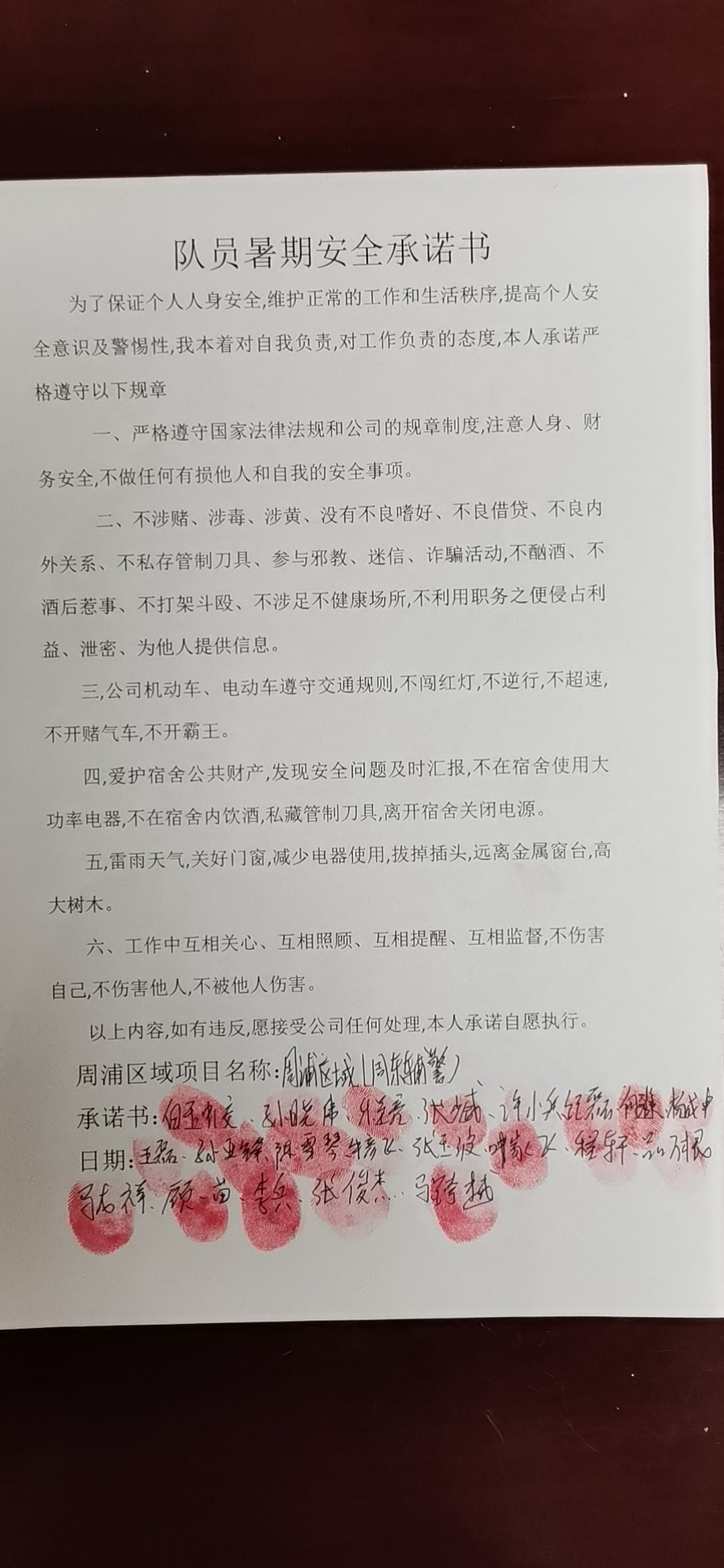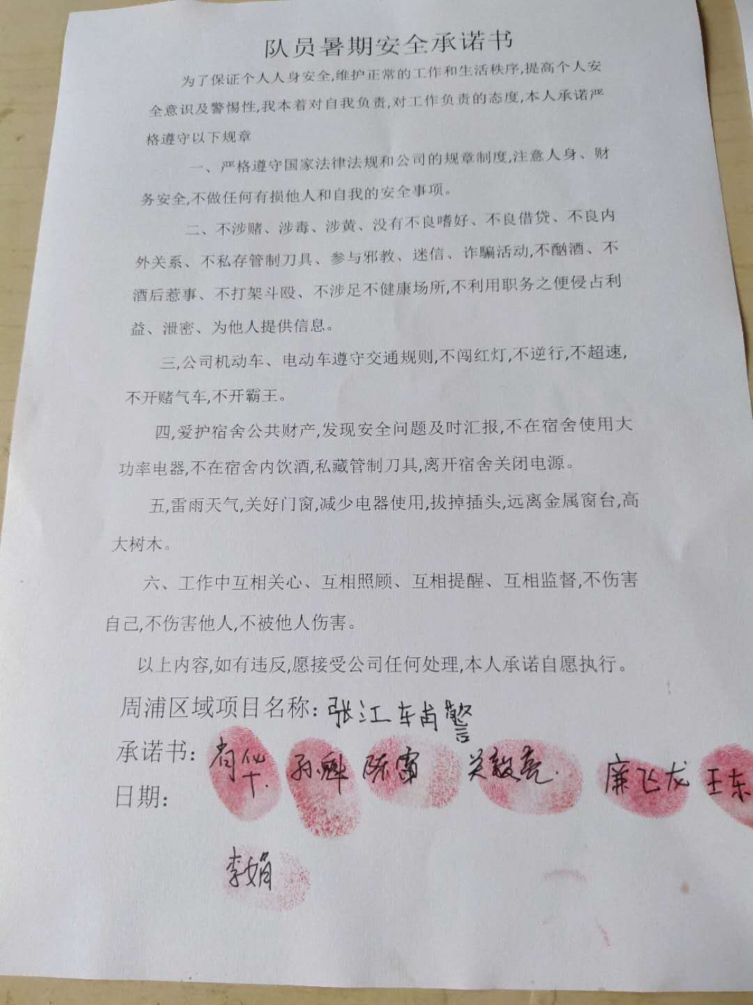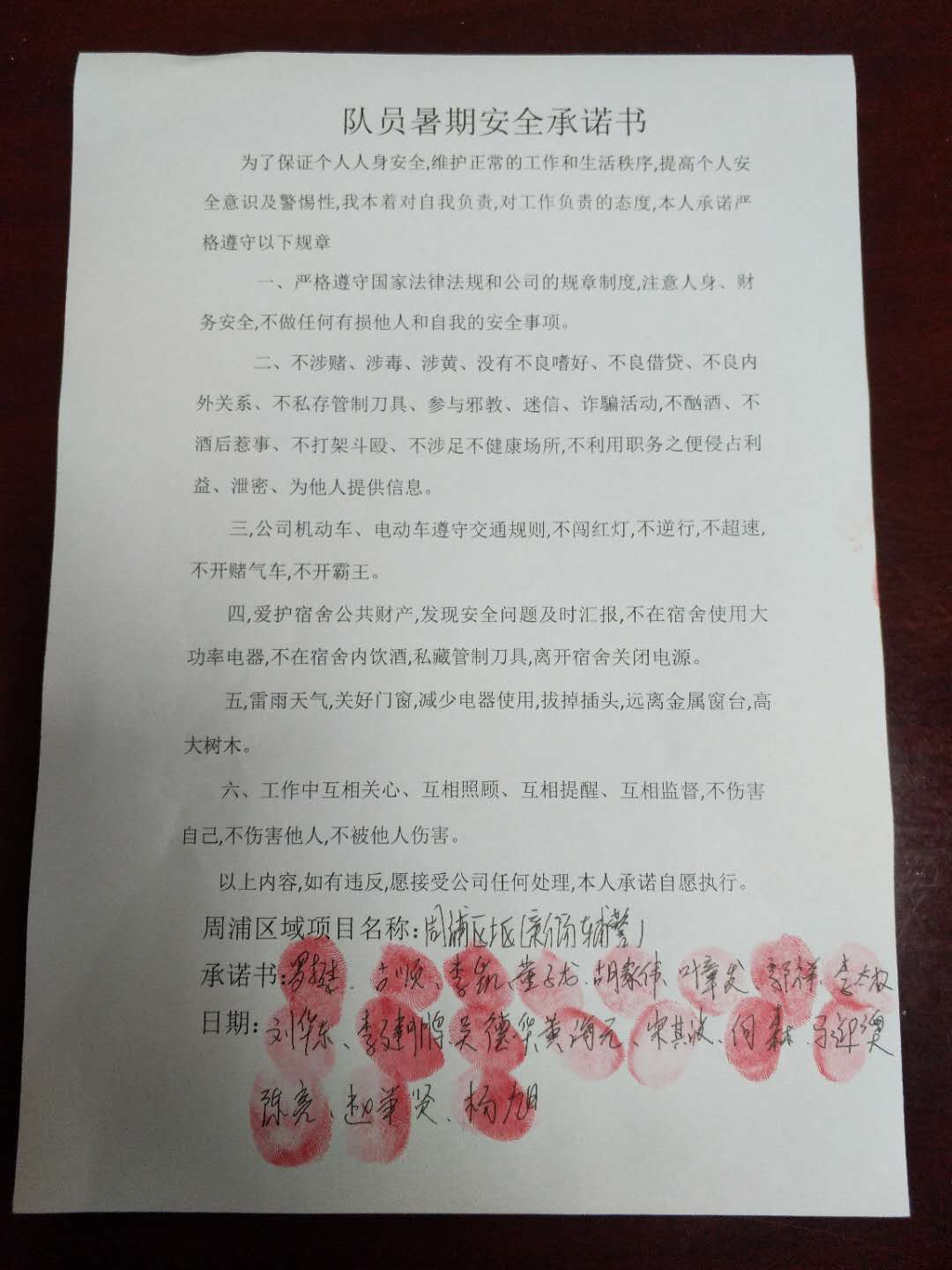 全體員工認(rèn)真學(xué)習(xí)領(lǐng)會公司暑期安全工作部署會精神,思想上高度重視,行動上堅(jiān)定自覺,各項(xiàng)目骨干帶頭與隊(duì)員簽訂暑期安全承諾書,強(qiáng)化責(zé)任意識,筑牢安全防線,堅(jiān)守安全底線,確保平穩(wěn)度夏。