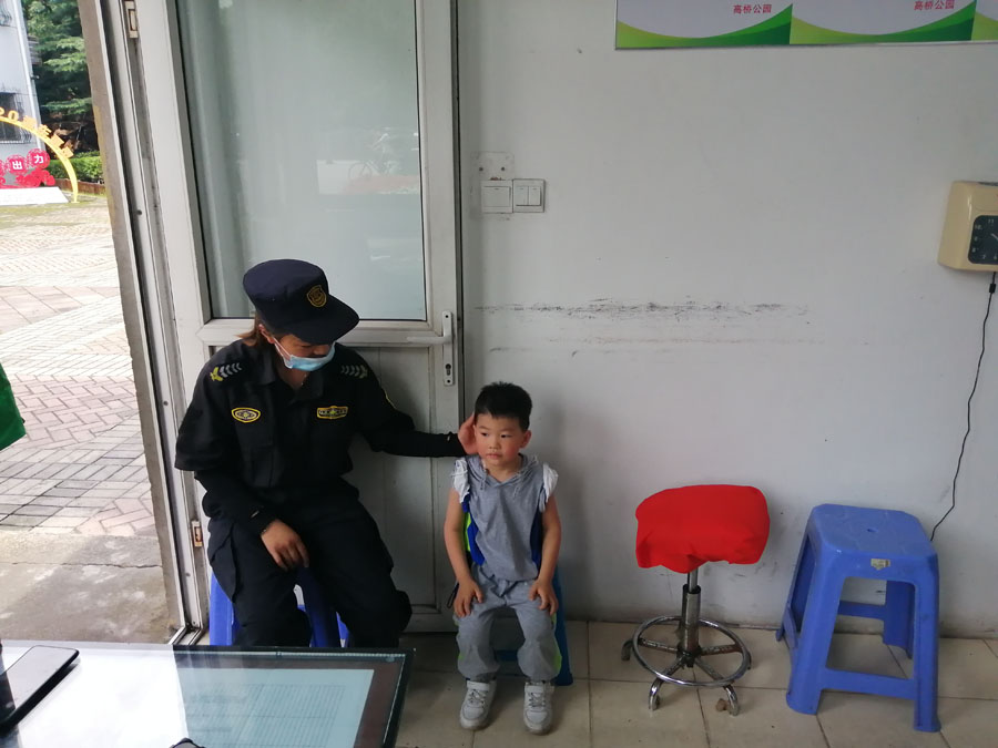 7月12日10:00,宗保公司駐高橋市容隊員馬卉蘭在高橋公園巡邏時,發(fā)現(xiàn)一名四五歲的小男孩在河邊哭,于是便上前詢問。“小朋友,你怎么一個人在河邊?家里人呢?”小男孩就是搖頭,一句話也不說,聽到問起家人,哭得更厲害了。