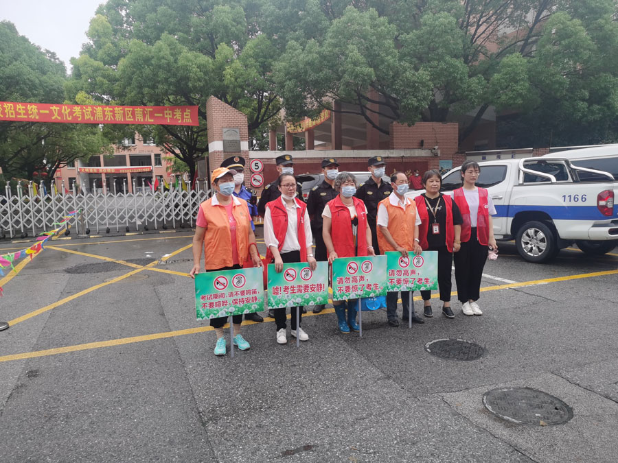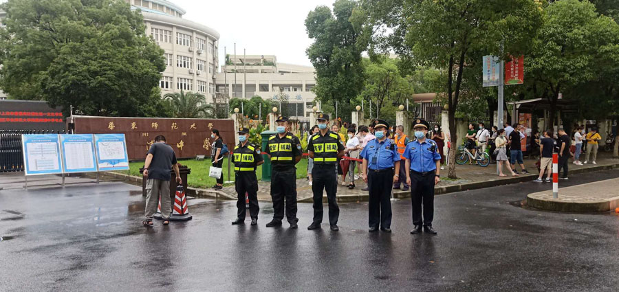 公司挑選近200名素質過硬、業(yè)務精干的隊員擔負周浦中學、南匯一中、南匯中學、華師大二附中、金山衛(wèi)鎮(zhèn)金衛(wèi)中學等考點附近相關道路的保障任務,配合有關部門對考場周邊的噪音污染、占道設攤、交通不暢、體溫測量等工作進行輔助管理。高考日,考點周邊的大街上、校門口、大雨中,都閃現著宗保人護考的身影,他們頂著潮熱、冒著大雨、一絲不茍,為助力學子圓夢值守護航。
