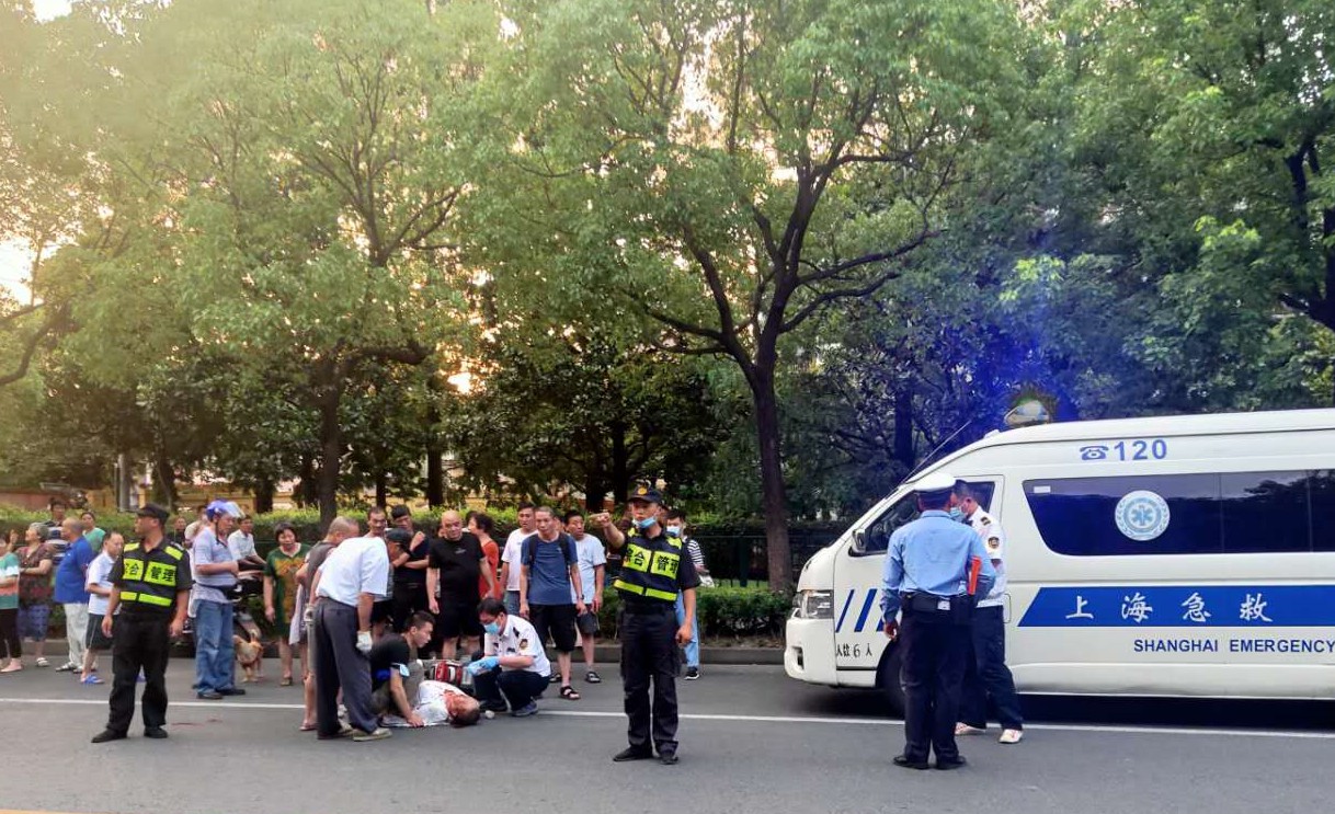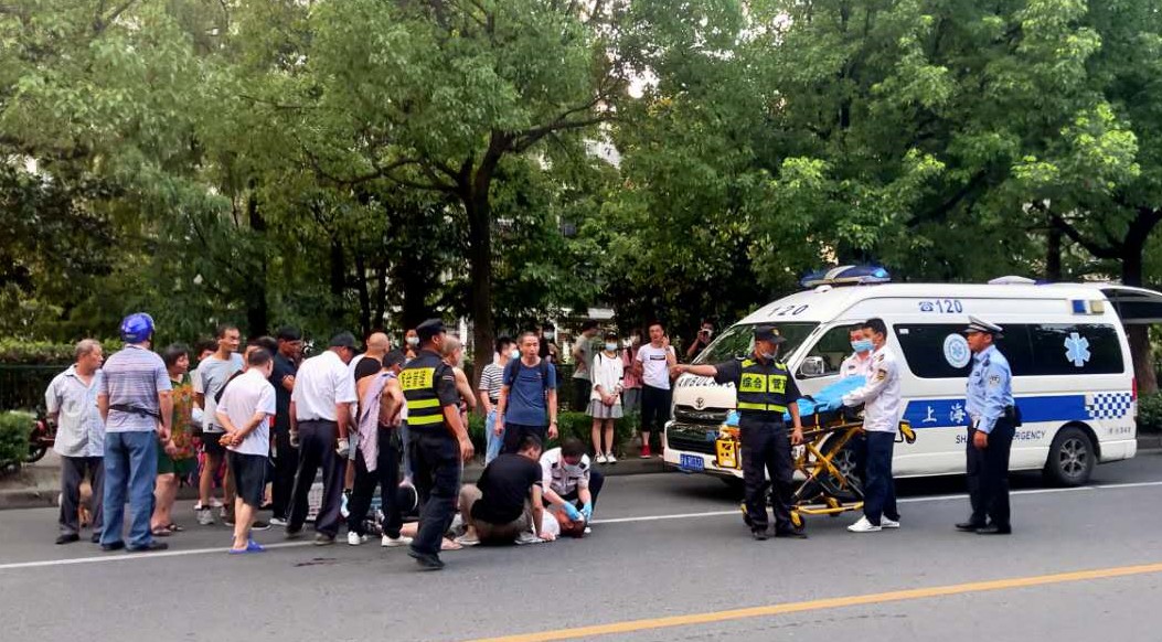 7月24日18:30,宗保公司駐三林市容項目隊員張治付等三名隊員巡邏至楊思地鐵1號口東30米時,遇到一起突發(fā)的交通事故。