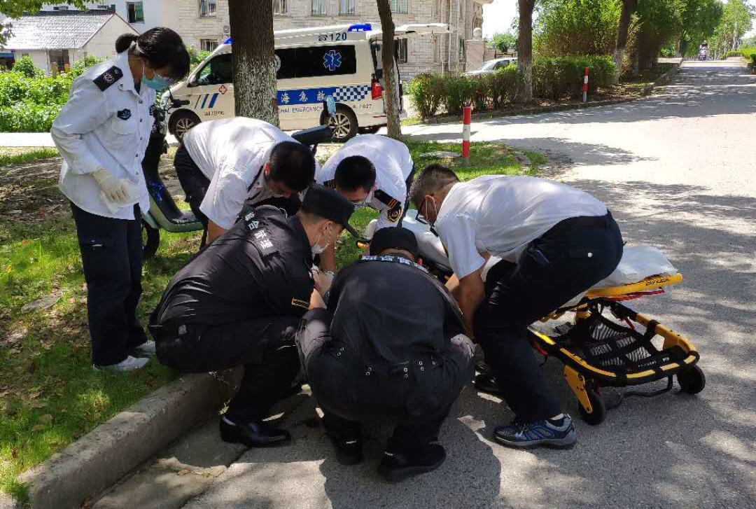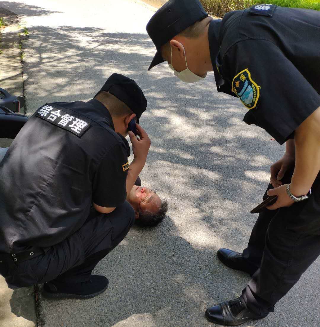 當(dāng)日10:30,網(wǎng)格監(jiān)督員張艷玲巡邏至南海公路與城宅路路口時,有路人向其求助,稱在后方約50米處有人騎車摔倒。張艷玲聞訊,迅速趕往現(xiàn)場,一名男性老者躺在路邊,不省人事,叫了幾聲,沒有回應(yīng)。小張就立即報告項(xiàng)目隊(duì)長王成成,并撥打了120急救電話。