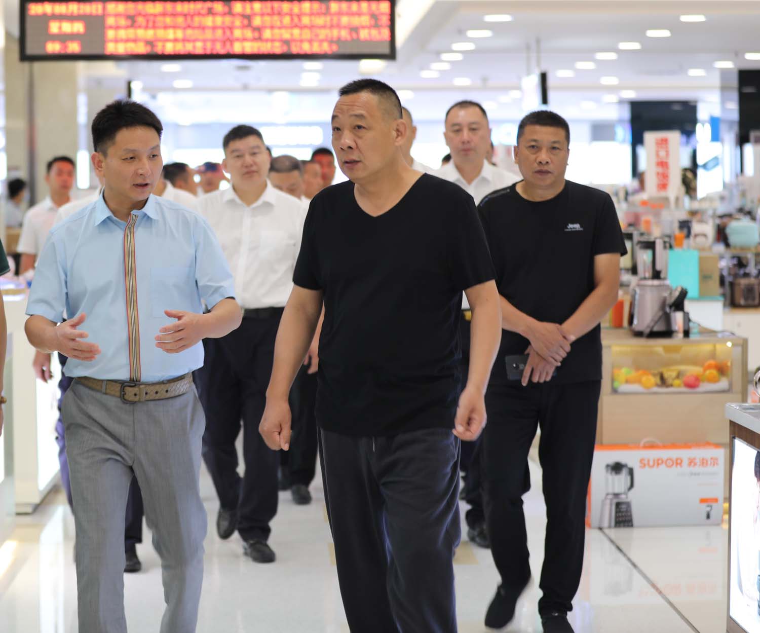 20日9:30左右,宗保公司一行人員乘車來到胖東來時代廣場。董事長于東來等人等在門口,親自接待,令參觀學(xué)習(xí)人員十分感動。