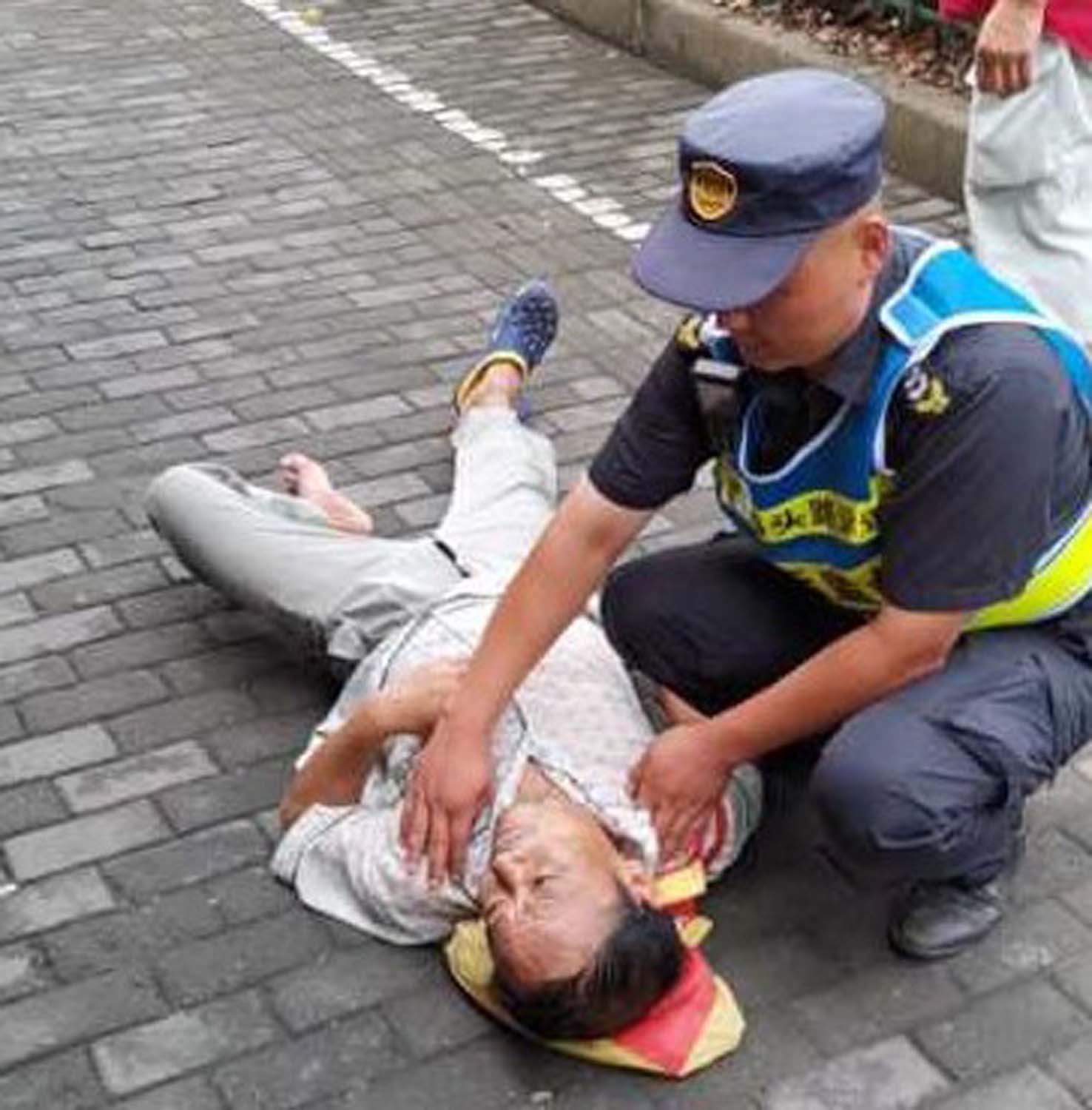8月11日8點(diǎn)左右,小網(wǎng)格副組長劉昆和隊(duì)員宋文松進(jìn)行網(wǎng)格巡查時(shí),發(fā)現(xiàn)一位老人躺在路邊人行道上。