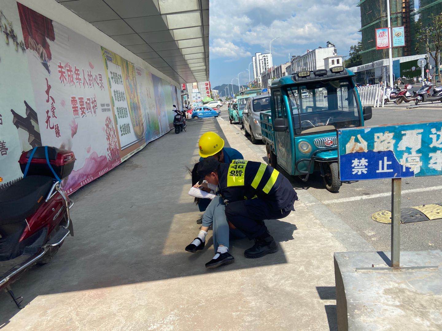 8月11日14:30,公司駐歙縣市容項(xiàng)目許志南、陸曉明、呂游3名隊(duì)員巡查到歙縣黃山東路時(shí),發(fā)現(xiàn)一個(gè)女孩躺在路上。