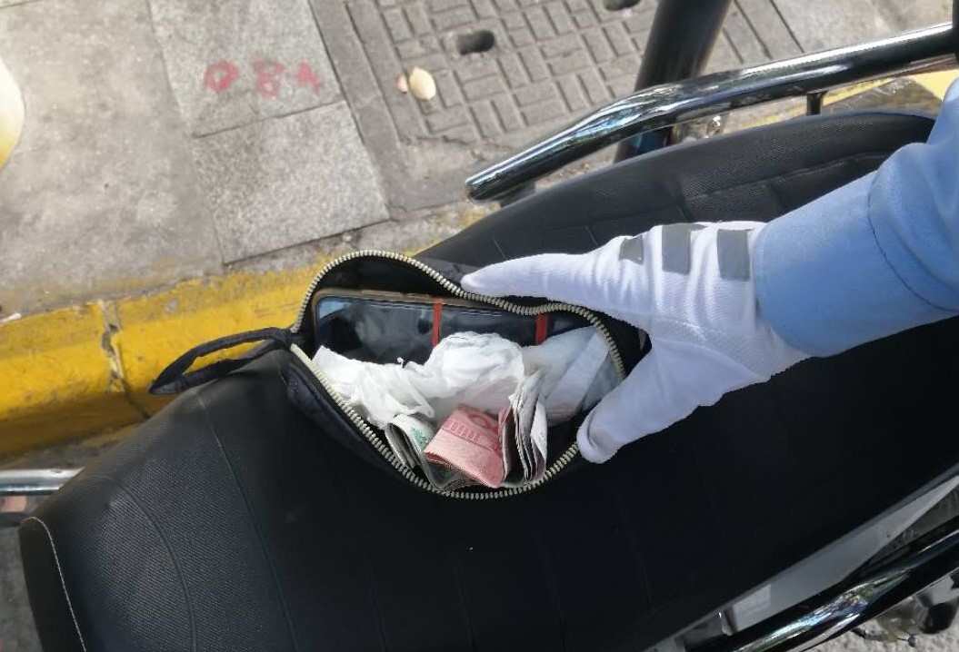 8月12日7:10,宗保公司駐閔行交通輔警項目隊員范成剛,在吳中路蓮花路路口執(zhí)勤時撿到一個手包,包內有手機、現(xiàn)金等物品。