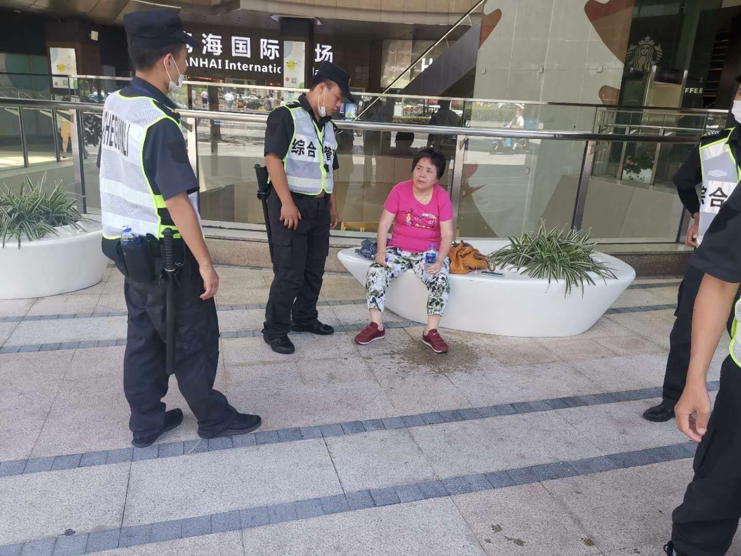 8月20日12:20左右,項目隊員朱世龍在陸家嘴環(huán)路世紀大道覽海國際門口執(zhí)勤時,發(fā)現(xiàn)一位老人出現(xiàn)中暑癥狀,就立即將當事人鄒阿姨攙扶到陰涼處休息,為她購買了一杯冰水,并一直守護著。