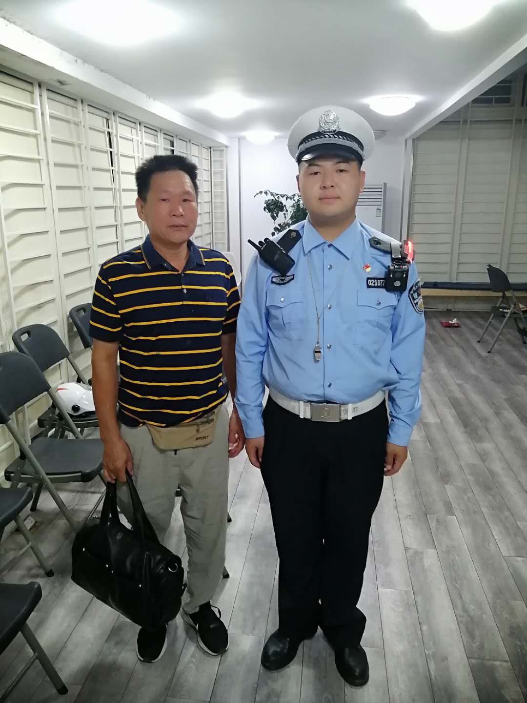 9月7日傍晚,上海宗保駐閔行虹橋輔警隊(duì)員王浩,在執(zhí)勤時(shí)撿到一個(gè)黑色手提包交還失主。