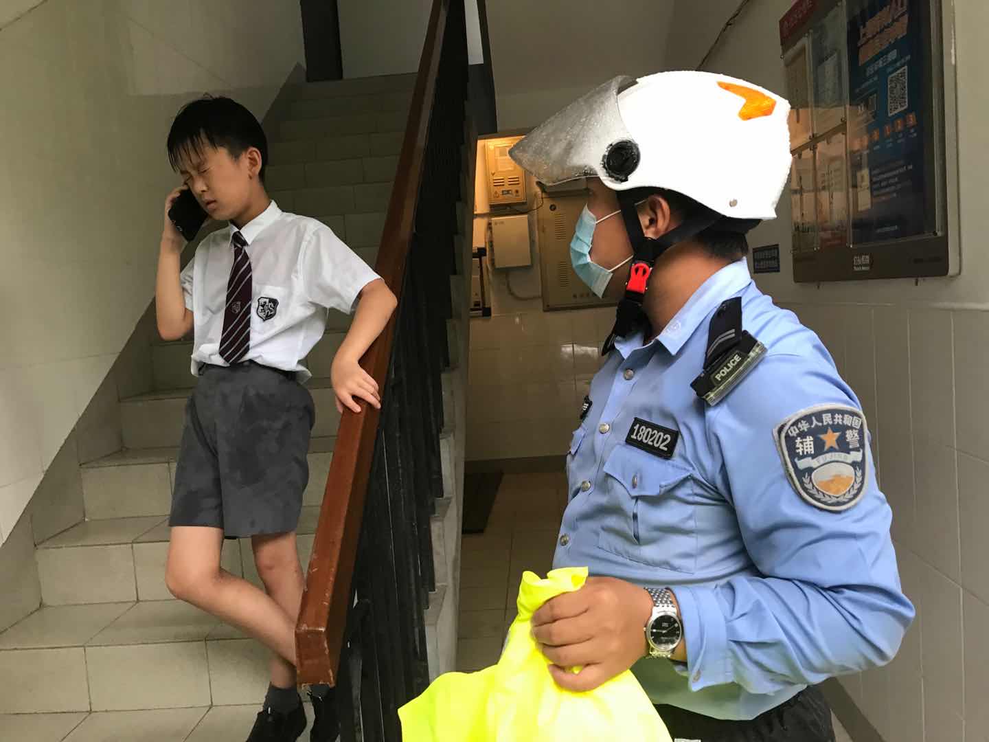 征得該學(xué)生同意,問清了他的具體家庭地址后,王軻使用巡邏電動車將該名學(xué)生護送至家中,待其母親回家后才離開。離開前,還不忘叮囑盡快把濕衣服換掉,喝點熱茶以免著涼。